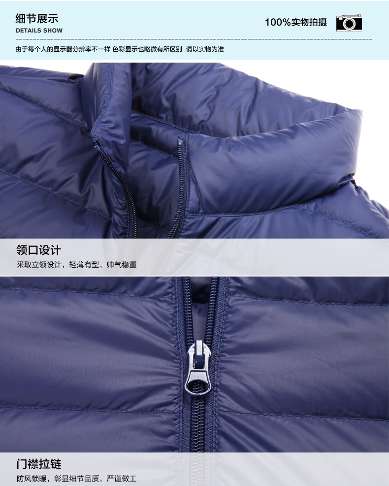 【优惠券全店可用】采用高含绒量白鸭绒,优质防水面料,高品质90%白鸭绒轻薄防寒,高密度面料,4层防钻绒技术,不跑绒/不钻绒,精致做工,舒适透气,男士百搭款,亏本做销量买到就是赚到【赠送运费险】
