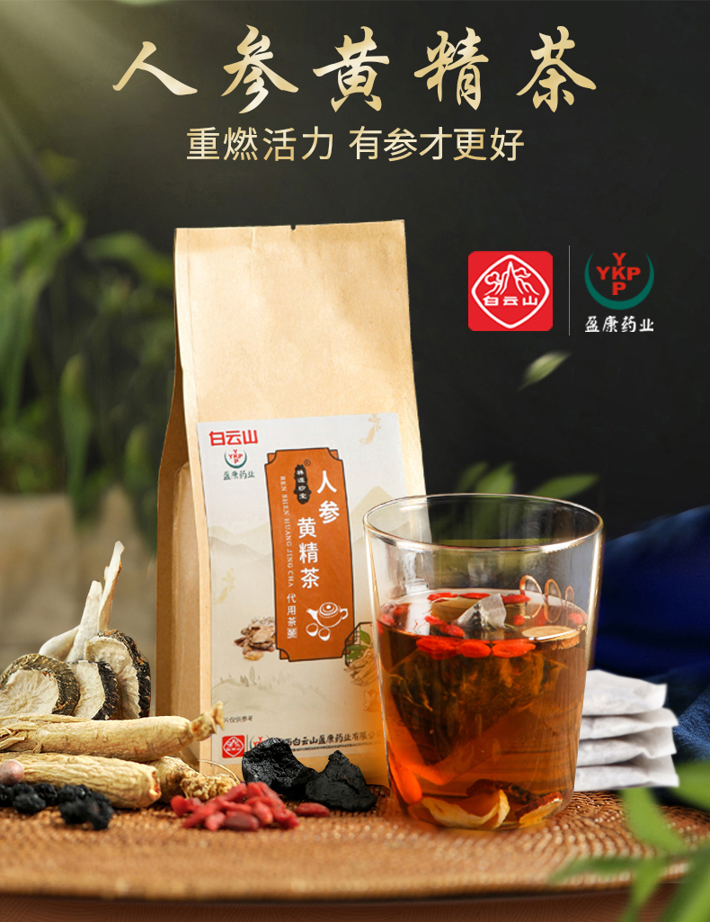 白云山人参黄精五宝茶桑椹山药覆盆子大麦组合八宝熬夜男女人茶