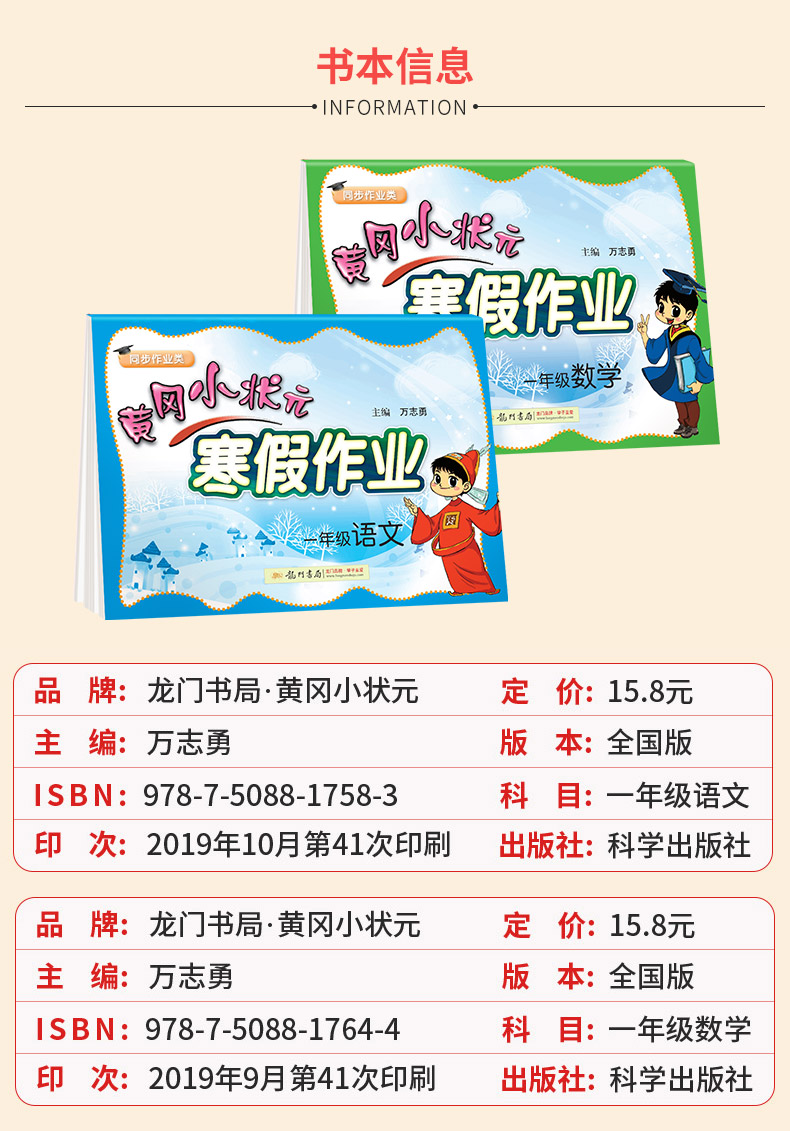 【套装】【一年级寒假作业】2020黄冈小状元寒假作业,语文数学套装,题型丰富,温故知新;答案详尽,方便批阅;16横开,字大不伤眼;每天30分钟,过充实假期!