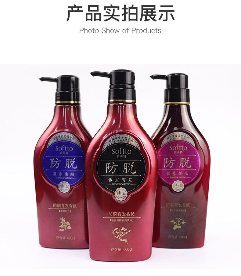 索芙特纯植物萃取配方,深层滋养毛囊,平衡油脂,从发根改善发质,修护毛磷,防脱固发、养发育发,让你越用越自信。