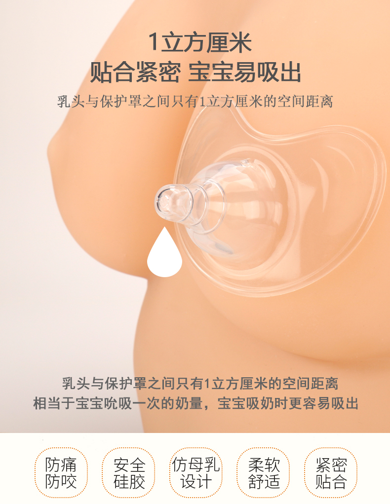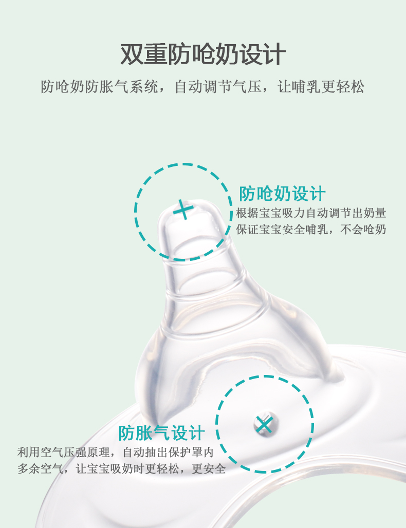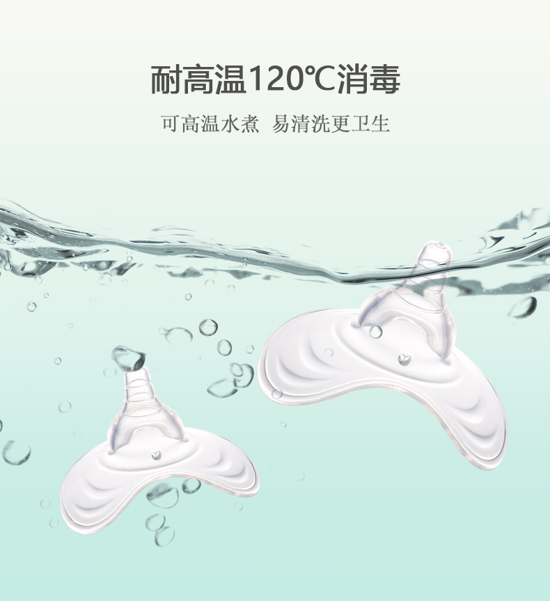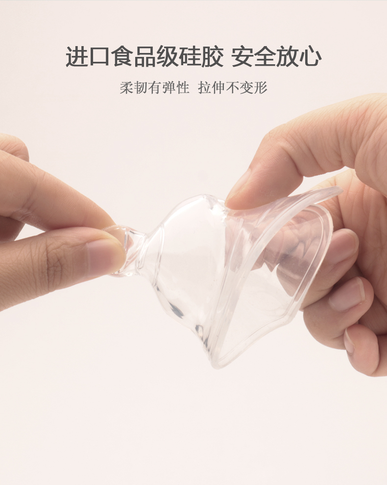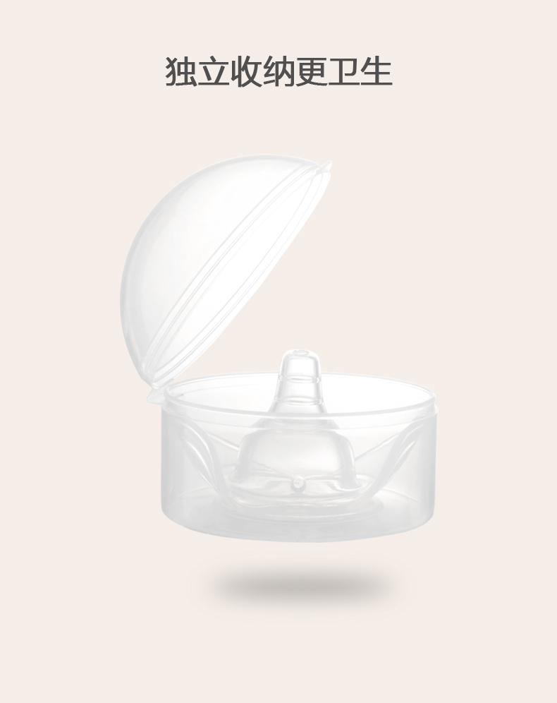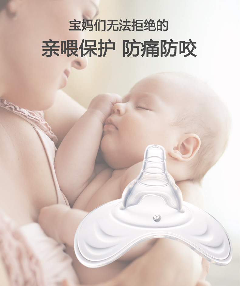 奶嘴式奶头保护盾,防痛防咬,波纹全贴合不脱落,人体工学设计稳固贴合,适合不同大小乳房,螺旋设计不凹陷,智能奶孔自动断流,进口食品级硅胶,耐高温120度消毒,安全认证,让使用更加放心