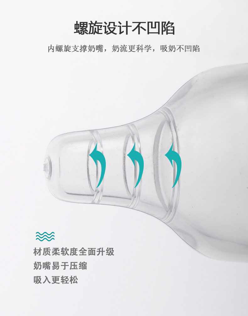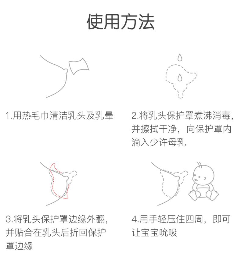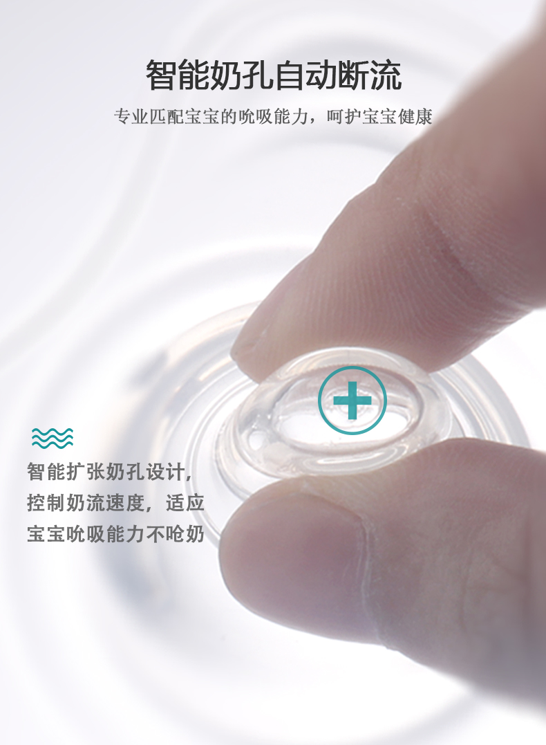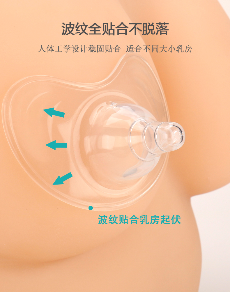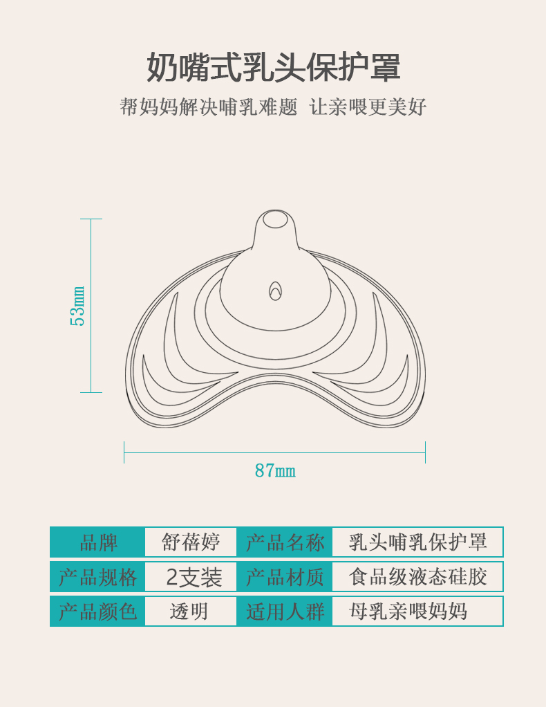 奶嘴式奶头保护盾,防痛防咬,波纹全贴合不脱落,人体工学设计稳固贴合,适合不同大小乳房,螺旋设计不凹陷,智能奶孔自动断流,进口食品级硅胶,耐高温120度消毒,安全认证,让使用更加放心