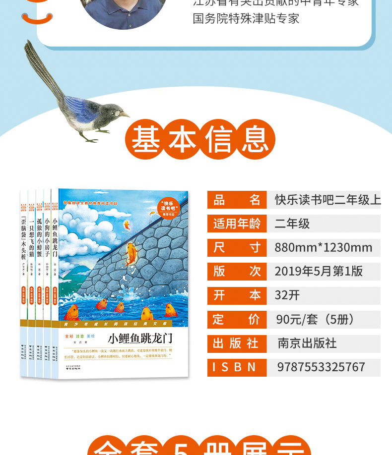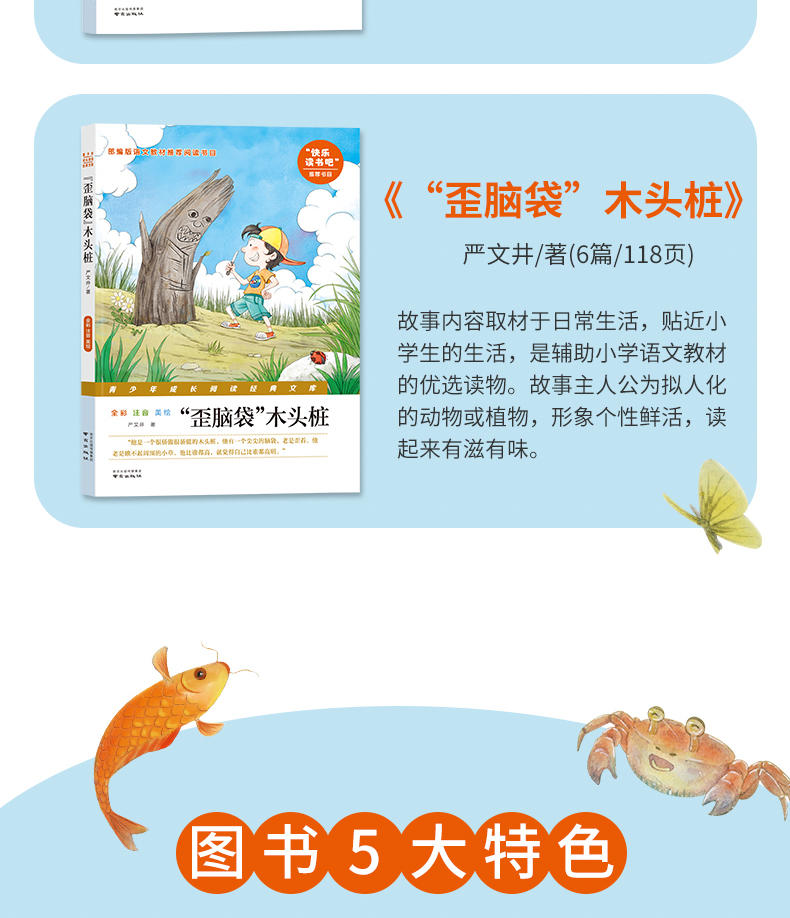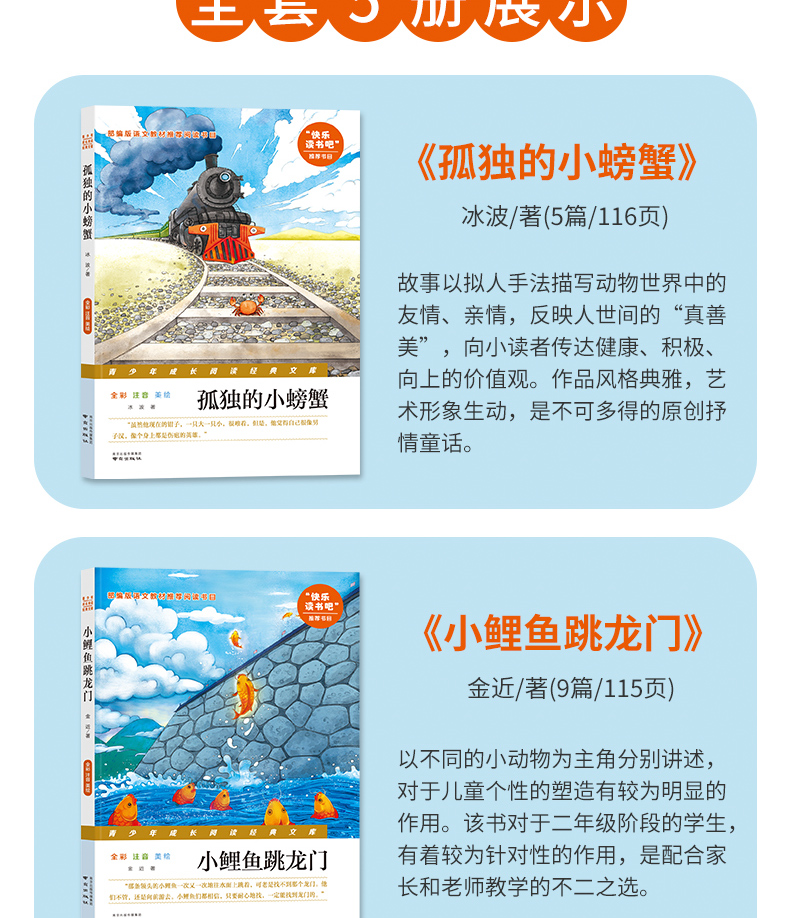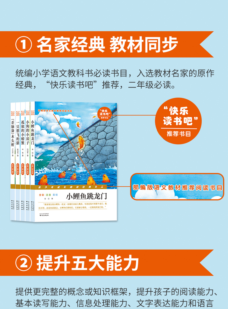 快乐读书吧丛书 二年级上全套小鲤鱼跳龙门二年级注音版5册一只想飞的猫孤独的小螃蟹小狗的小房子小学生二年级课外书必读老师推荐