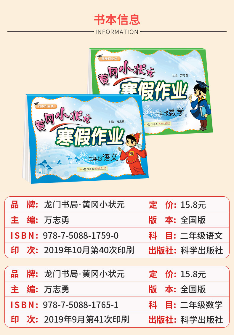 【套装】【二年级寒假作业】2020黄冈小状元寒假作业,语文数学套装,题型丰富,温故知新;答案详尽,方便批阅;16横开,字大不伤眼;每天30分钟,过充实假期!