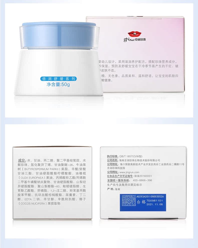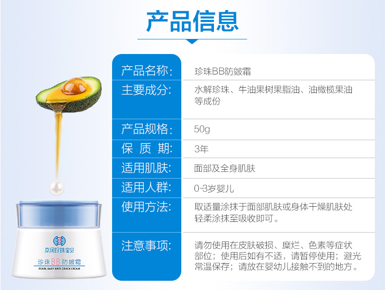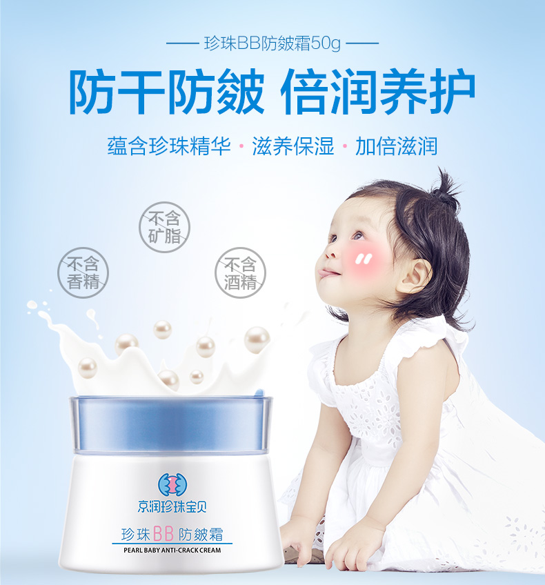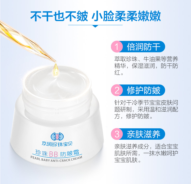 【京润珍珠旗舰店】婴儿秋冬防干红皴裂安全保湿锁水宝宝霜,专利水解珍珠精粹,富含氨基酸微量元素柔嫩细肤;牛油果油滋润皮肤;油橄榄果油让皮肤弹性有光泽。无添加安全易吸收更适合0-3岁宝宝使用!