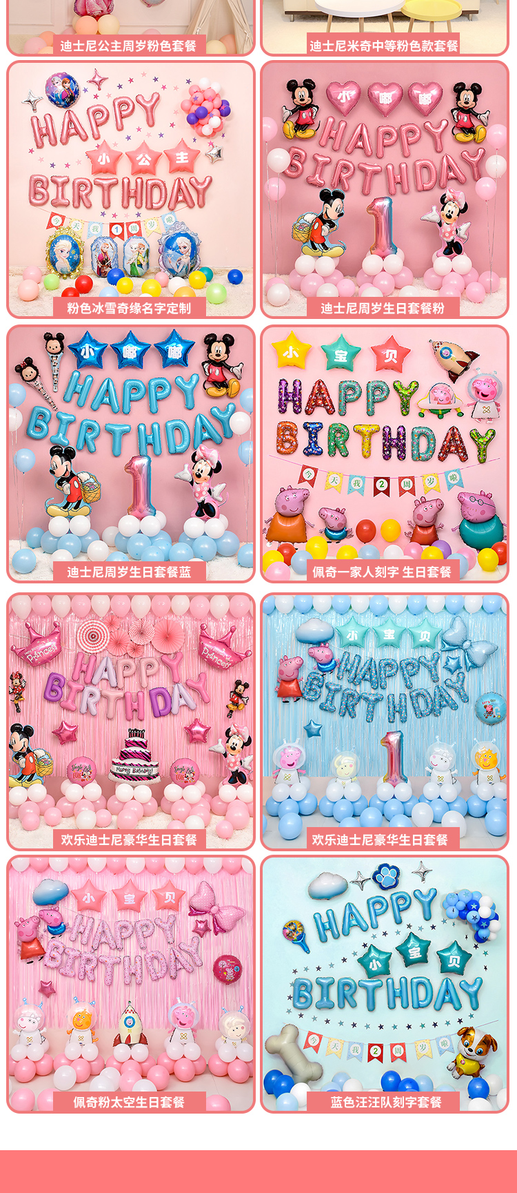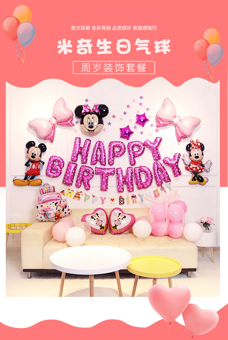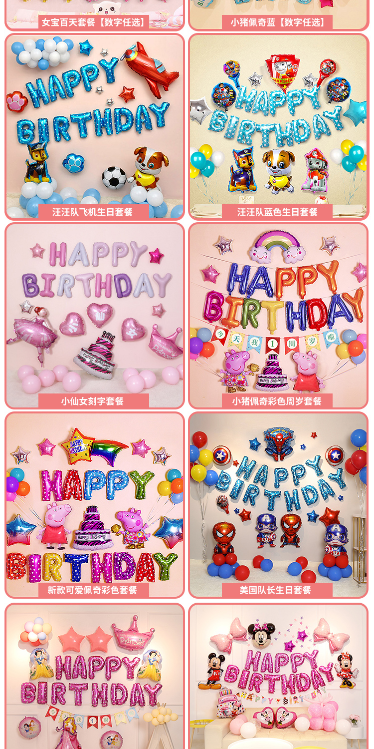 生日装饰背景墙儿童场景布置卡通周岁快乐男女童一周岁派对气球