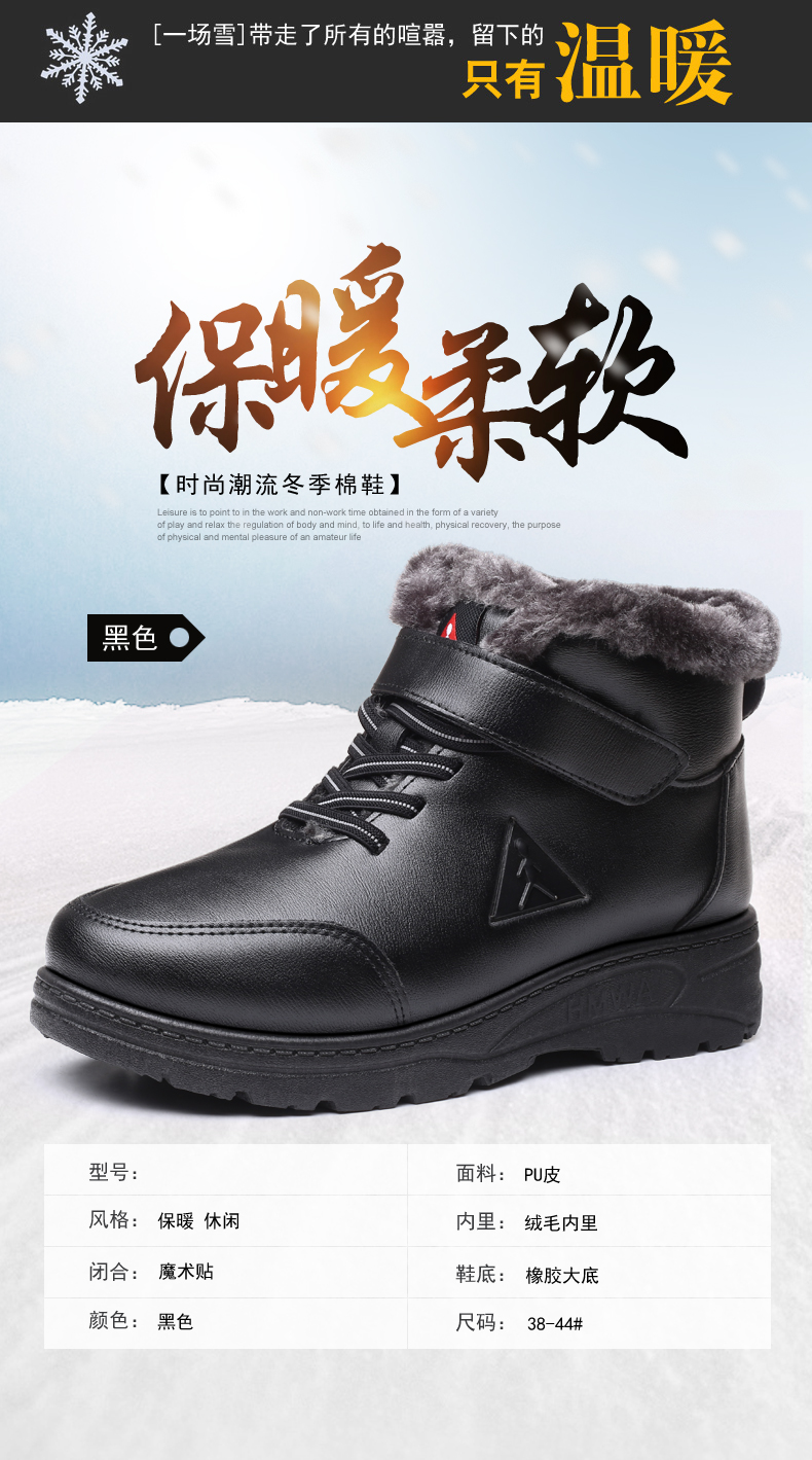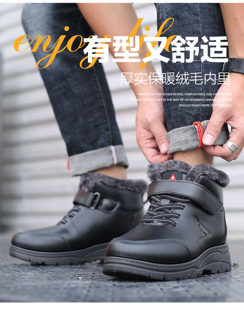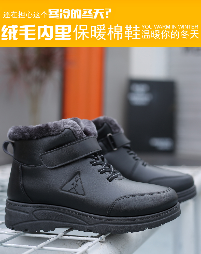 2019新款冬季加绒加厚户外运动老人爸爸雪地靴保暖棉靴短筒防滑
