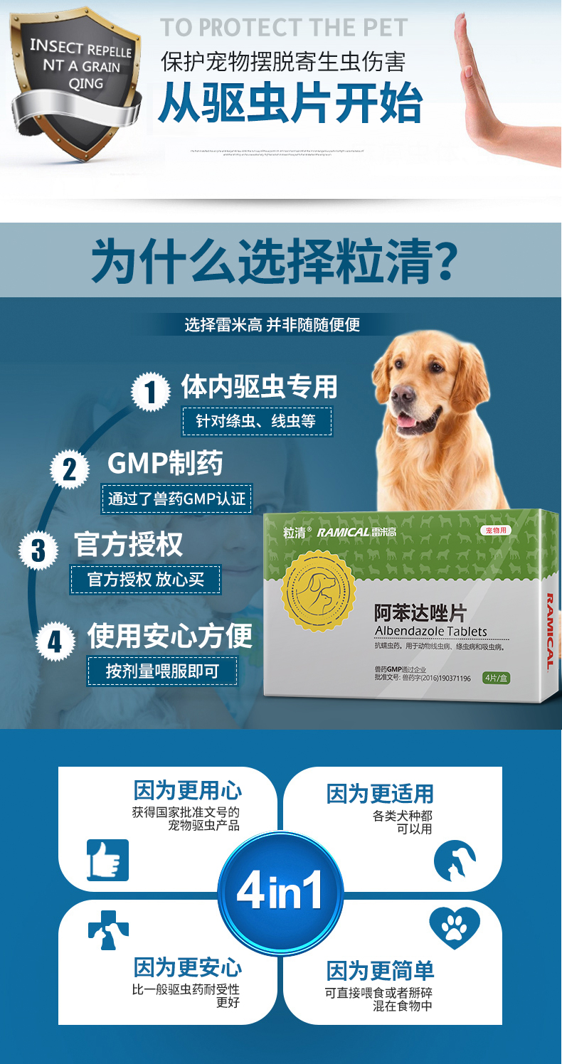 【第二件减10元】宠物体内驱虫药,阿笨达唑片,驱杀线虫,绦虫和吸虫,共4片!有效驱虫,无效包退!喂食容易,可以磨成粉加入猫粮,或者拆装直接喂食,正版认证,放心购买!【赠运费险】