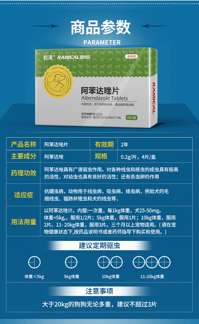 雷米高狗狗体内驱虫药宠物猫咪体内外泰迪通用打虫药品阿苯达唑片