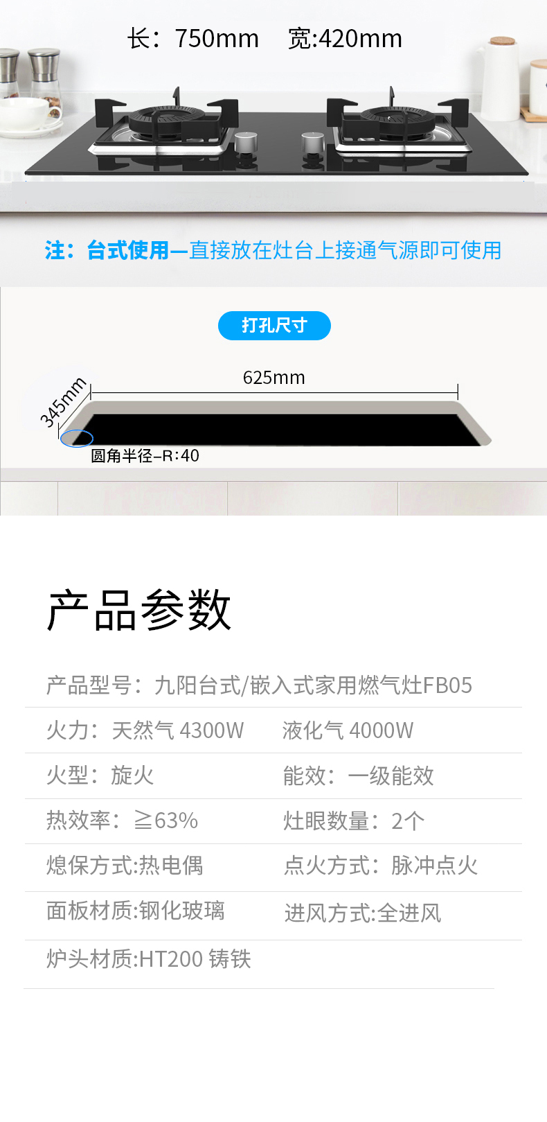 九阳FB05燃气灶煤气灶双灶家用液化气天然气嵌入式台式两用猛火灶