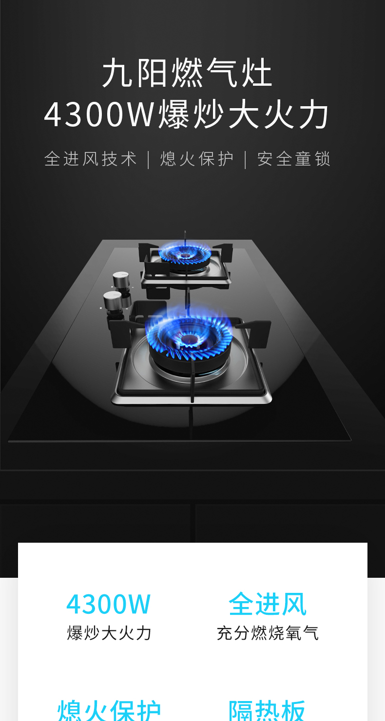 九阳正品保证!高颜值FB05燃气灶嵌入式双灶,多重烹饪方式,4300W大火力,3层防爆玻璃面板,熄火保护装置,轻松做菜,安全放心!【送货入户】