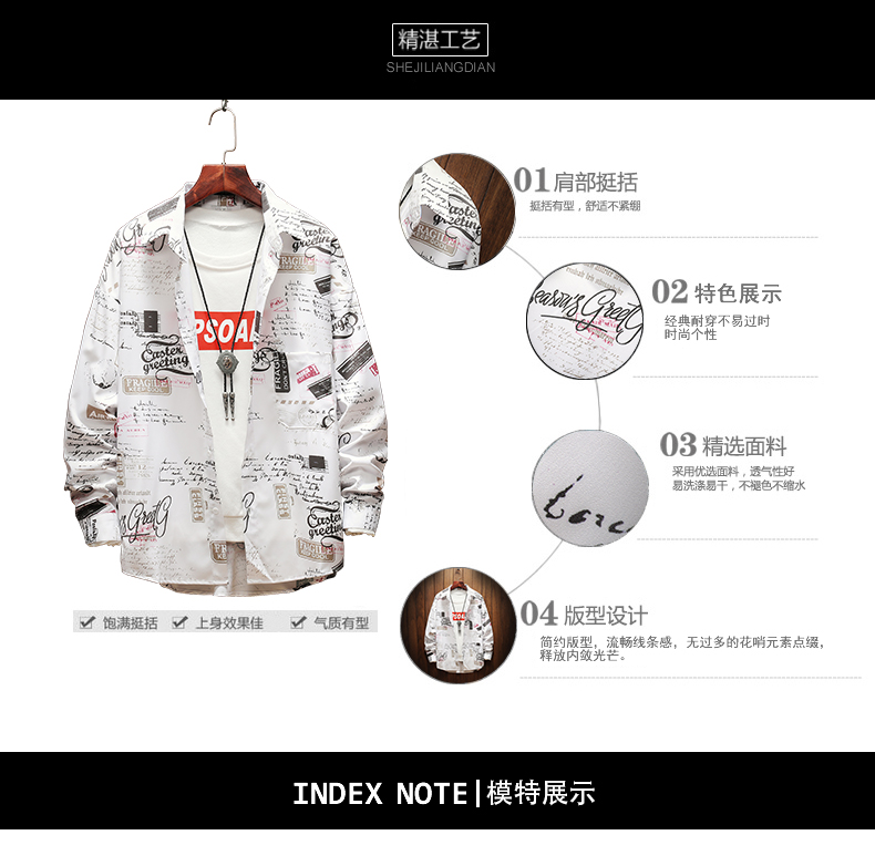 衬衫男2019春秋季新款潮牌日系男士长袖衬衫宽松潮流休闲衬衣外套