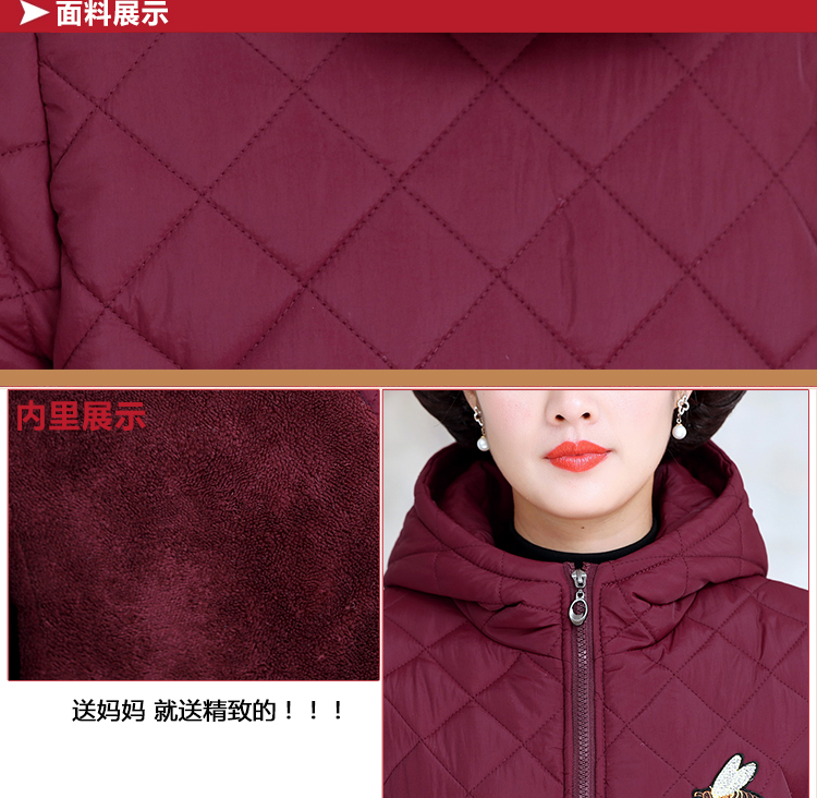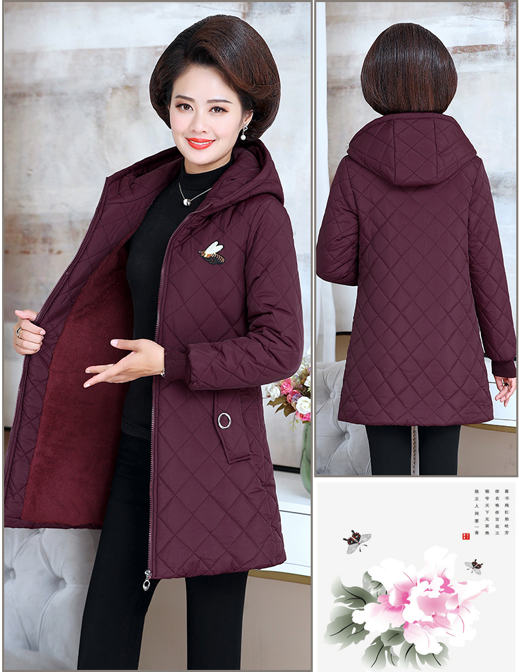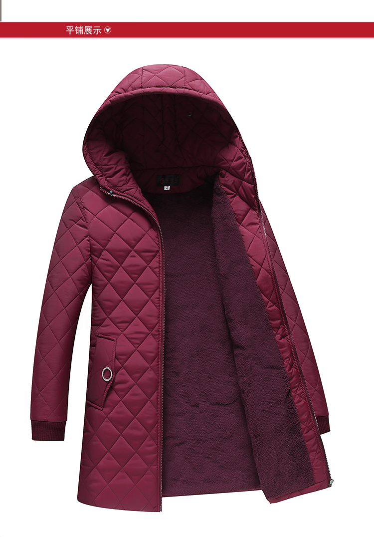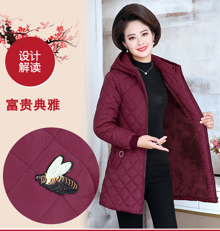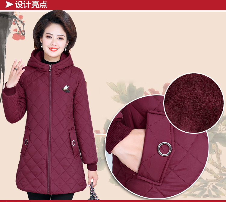 中老年女装棉衣中长款连帽冬季妈妈装冬装棉服加绒加厚外套棉袄新