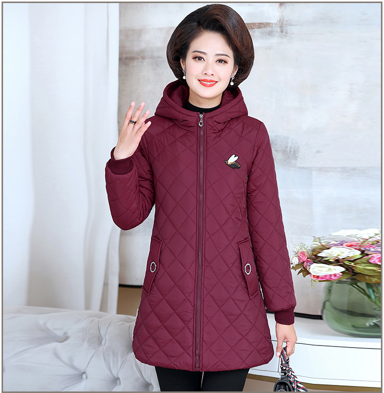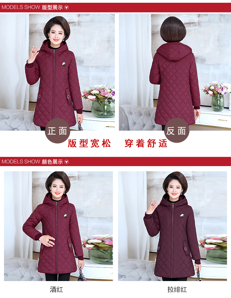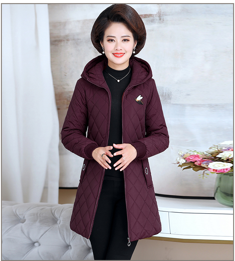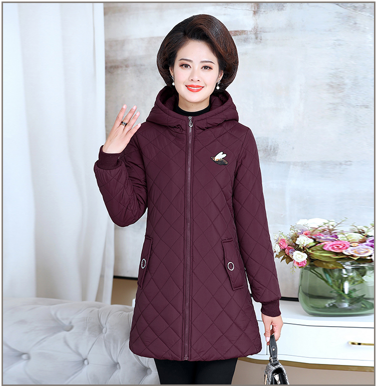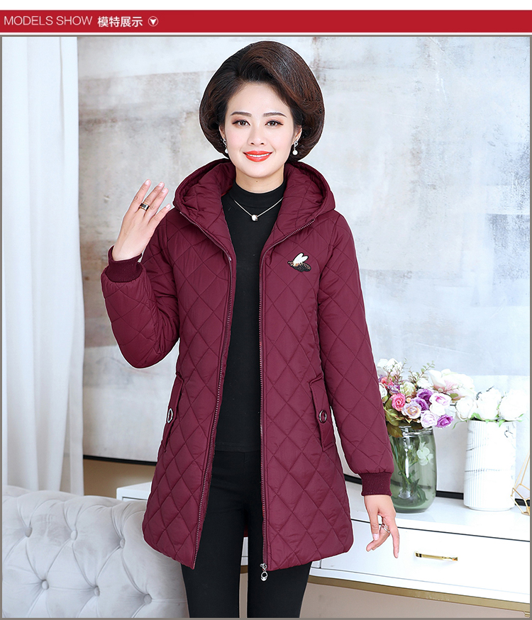 中老年女装棉衣中长款连帽冬季妈妈装冬装棉服加绒加厚外套棉袄新