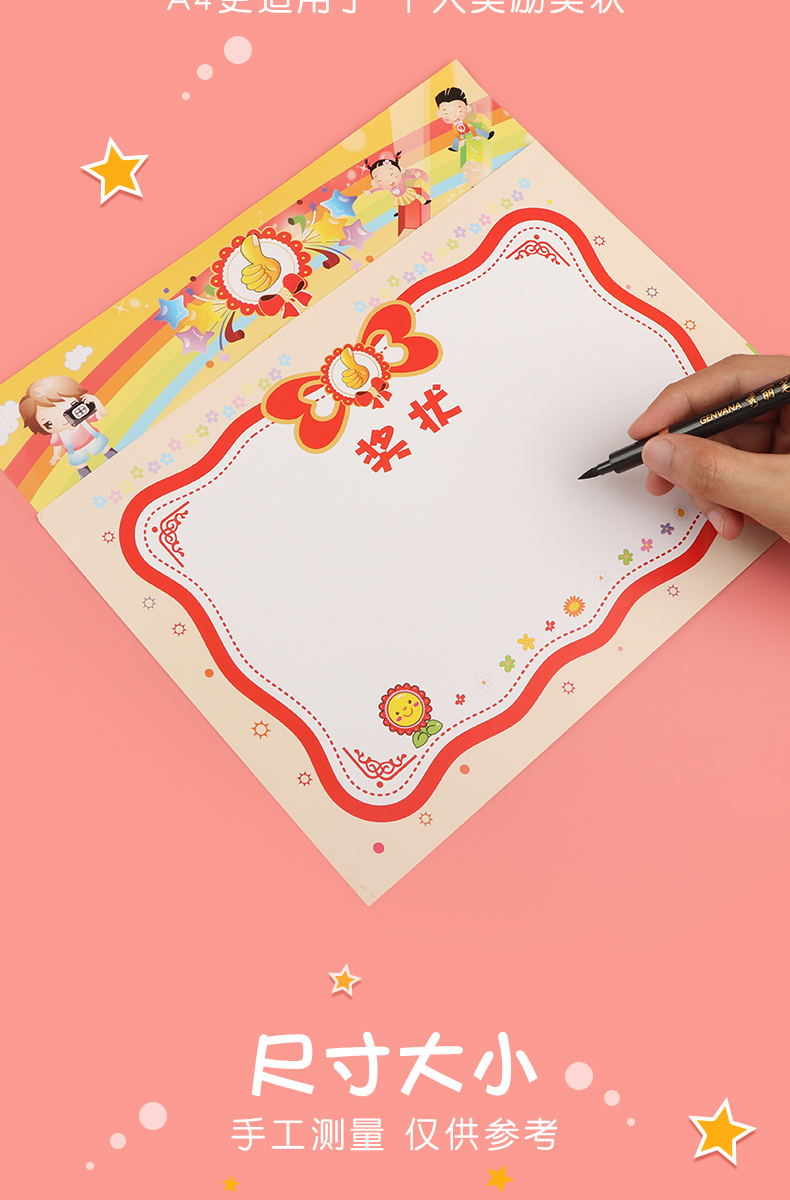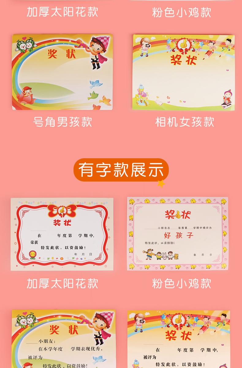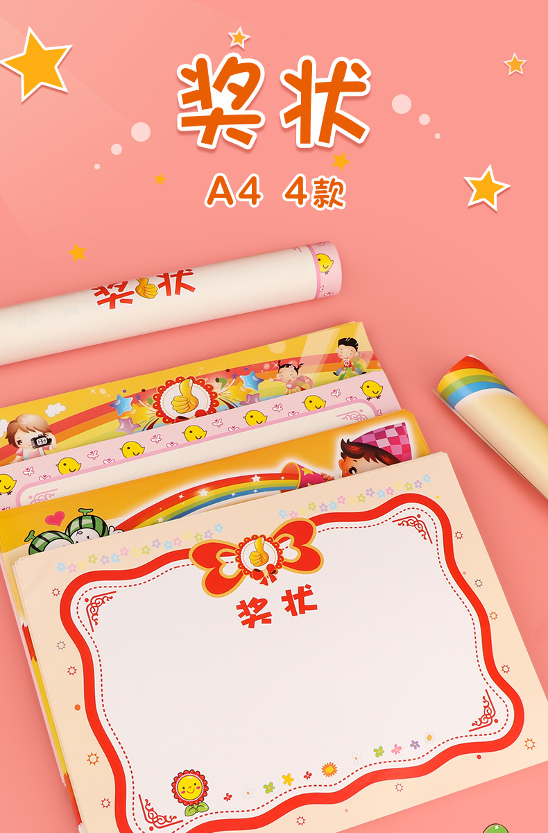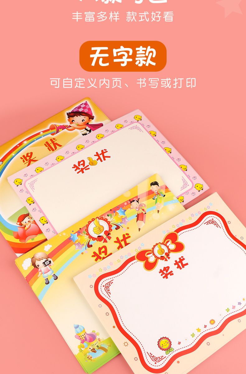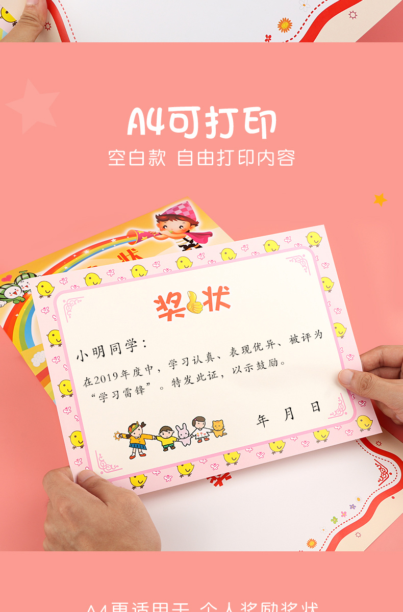 小学生奖状定制儿童幼儿园大班毕业奖状a4奖状纸空白荣誉证书可打印多款三好学生创意可爱卡通小奖状教师专用