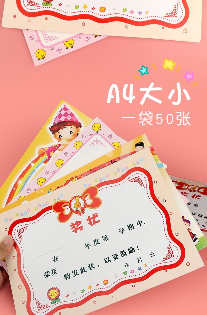 【限时秒杀】卡通可爱创意表扬信,小奖状教师专用,奖励小奖状卡,幼儿园儿童奖状纸50张,速度抢!