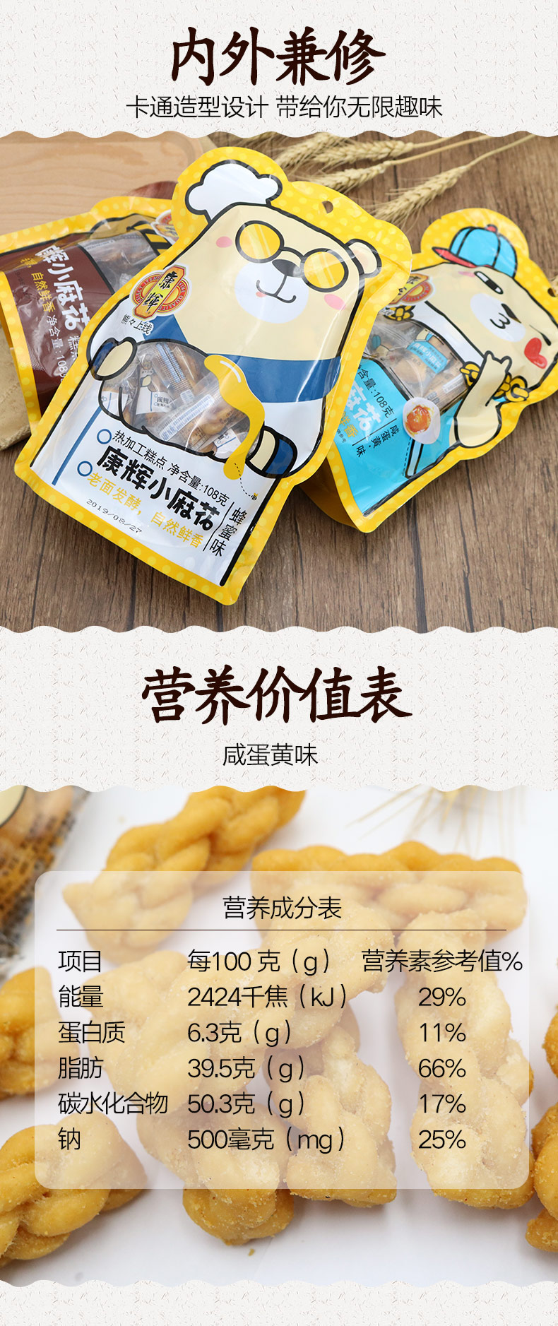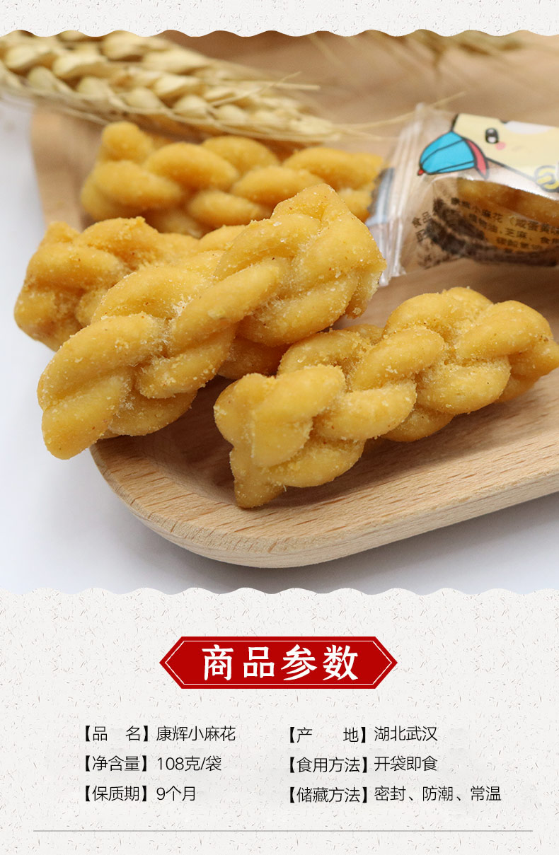 康辉小麻花零食热加工酥脆麻花单独小袋办公休闲糕点小吃108g*3袋