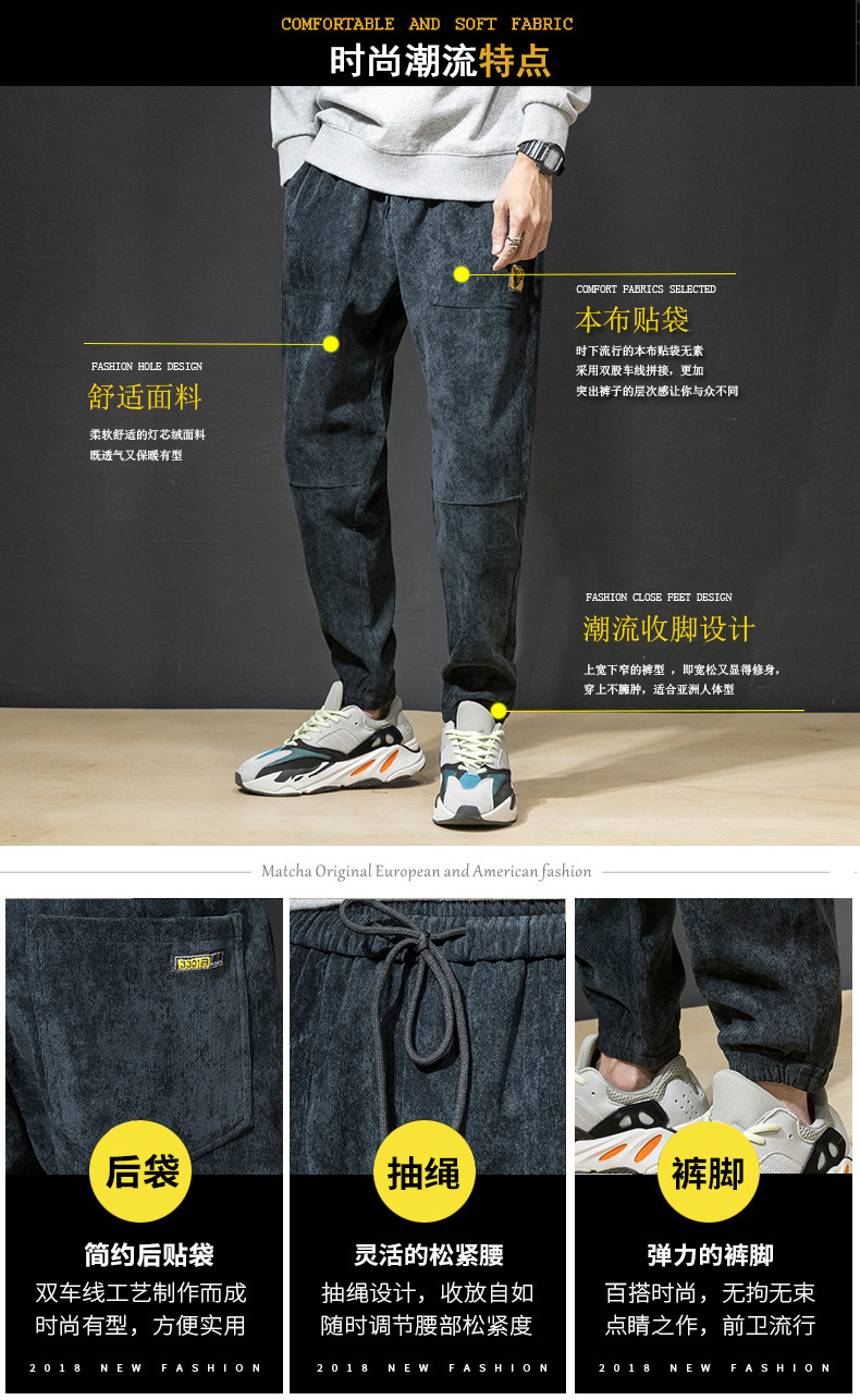 裤子男士休闲长裤秋季时尚束脚卫裤秋冬款加绒加厚宽松运动裤男