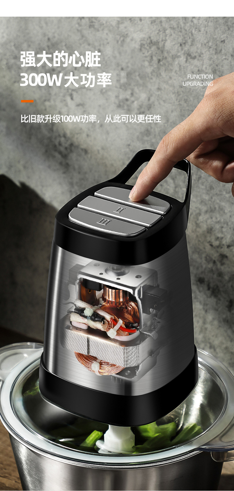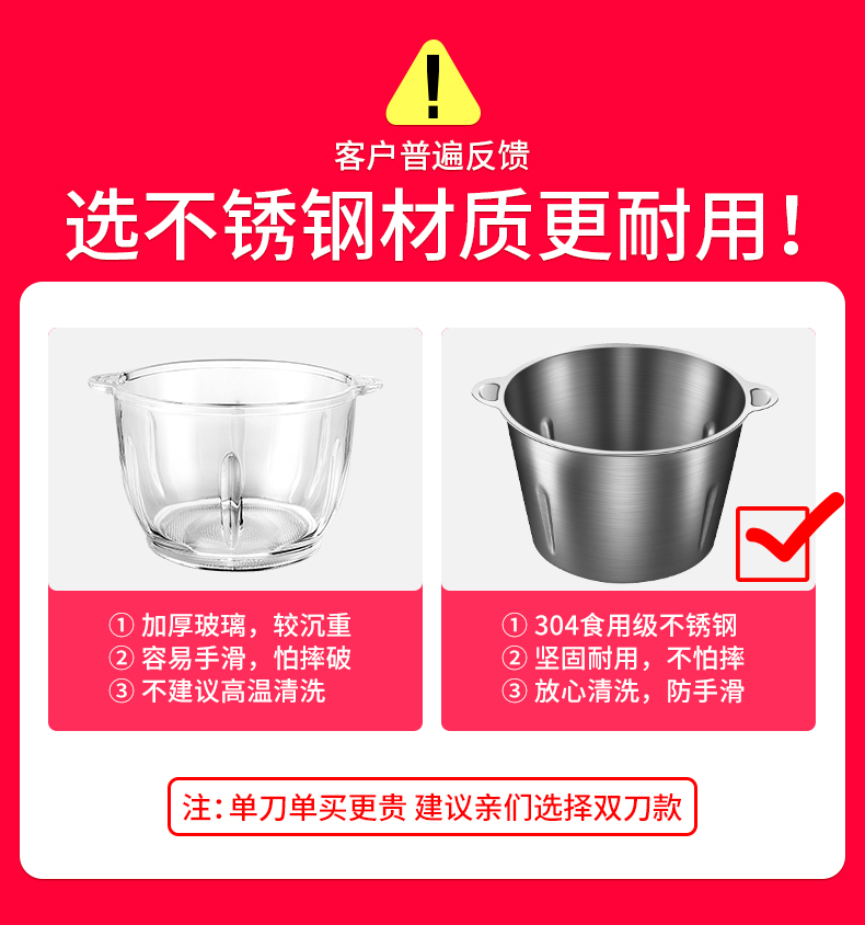全新升级,2斤加厚大容量玻璃杯,加厚不锈钢机身,三档开关,双层S刀头,精钢接口,打蛋,碎菜,绞肉都OK,快过年了,厨房必备,轻松解放双手,快给老妈撸一个【五年免费换新+赠运费险】