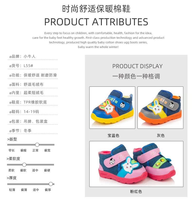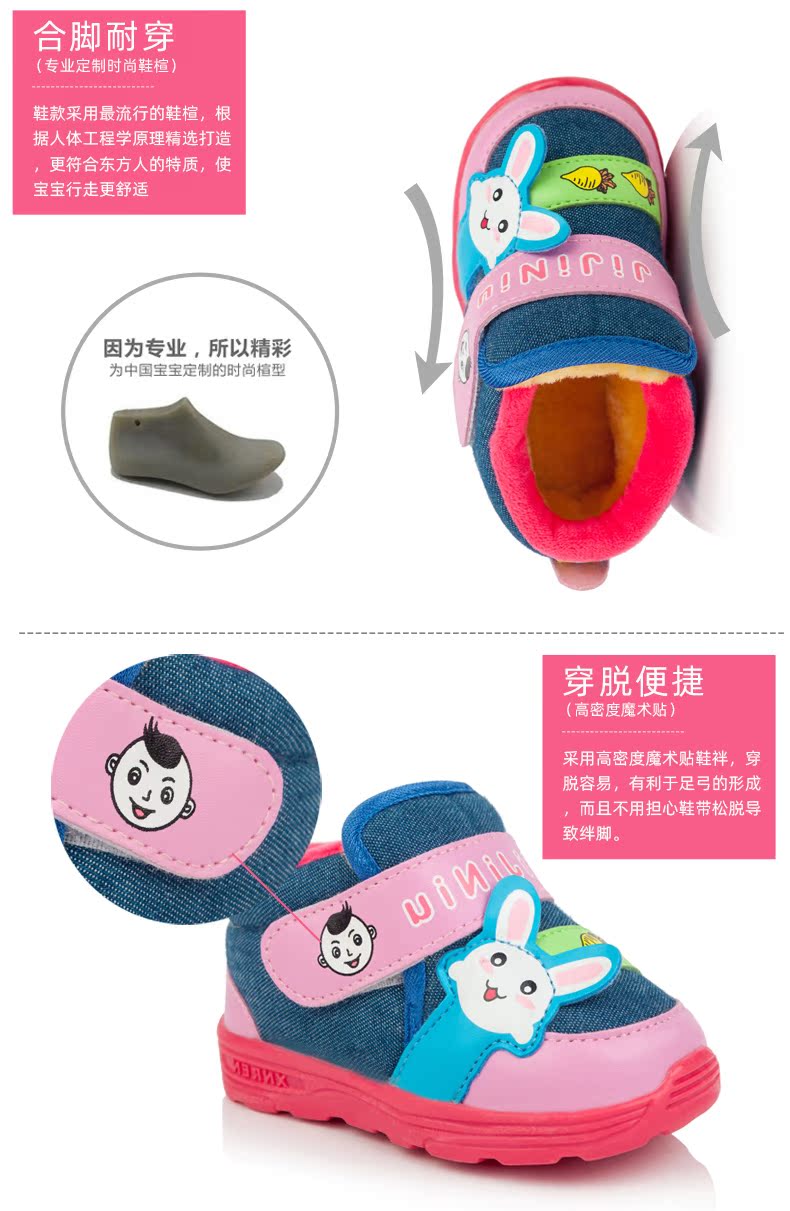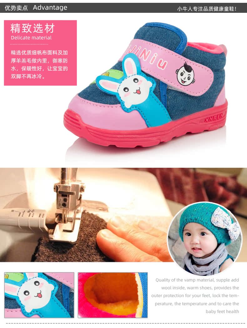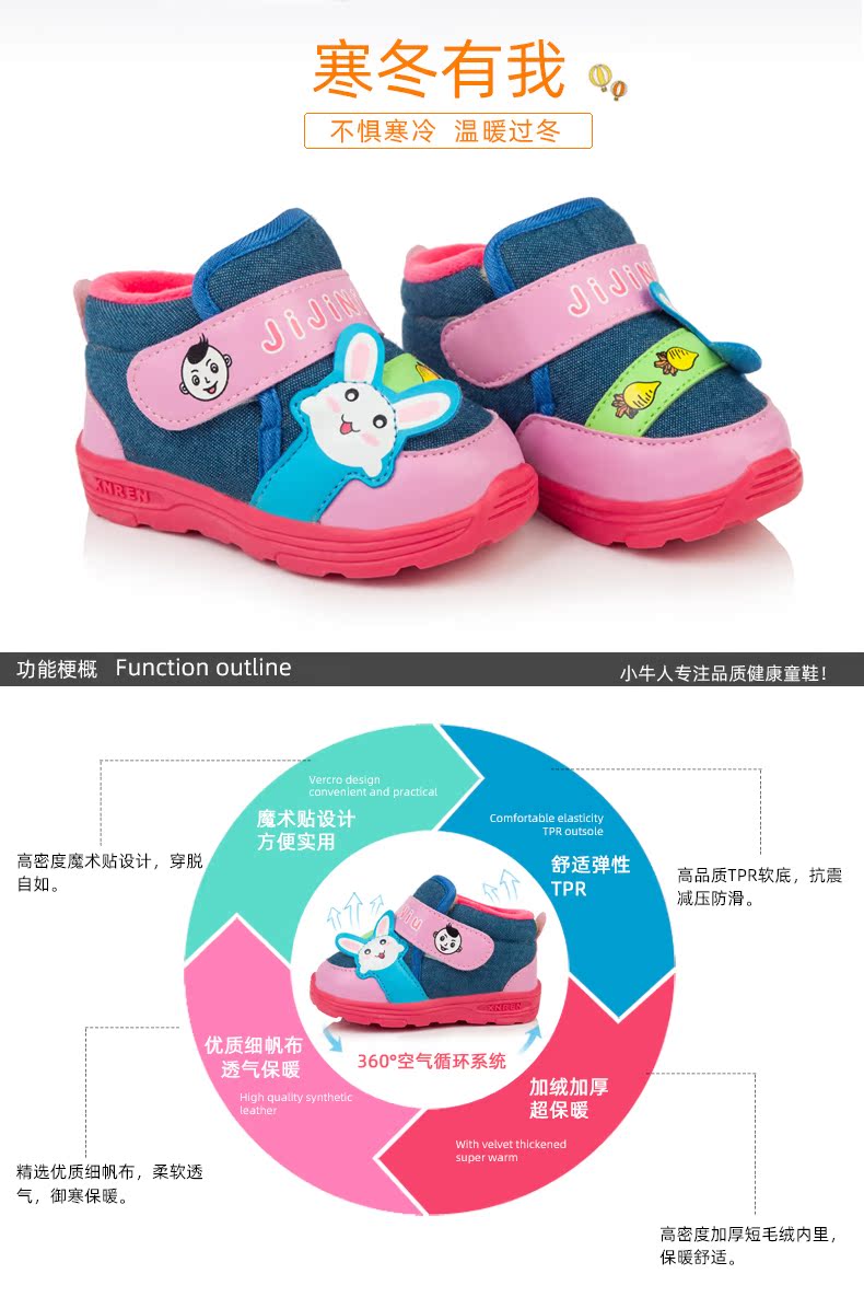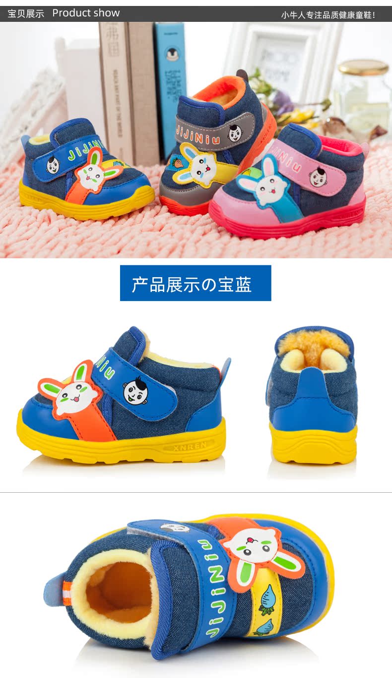 小牛人棉鞋宝宝休闲鞋冬季加厚保暖棉鞋机能鞋可爱卡通棉布鞋