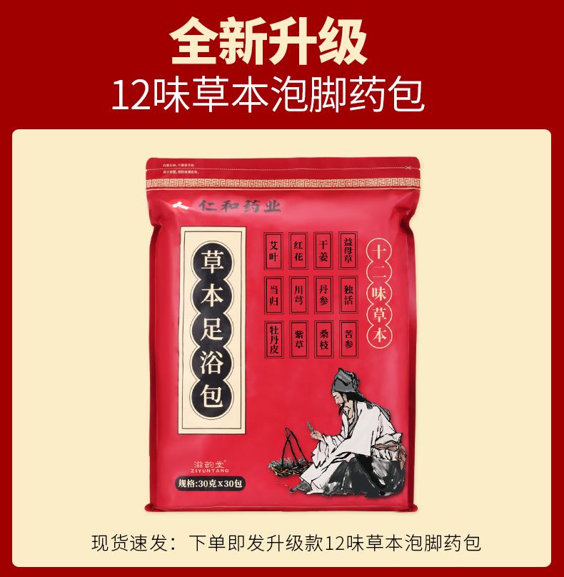 【足浴包销量爆款!爆款返场!】超大包共900g足足有30包!八味天然草本中药材,冬病夏治,驱寒祛湿,改善睡眠,一年四季,男女老少,全家适用,养生必备!给长辈们送烟酒不如送健康!