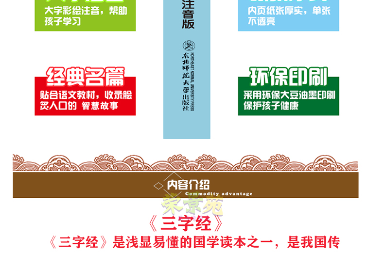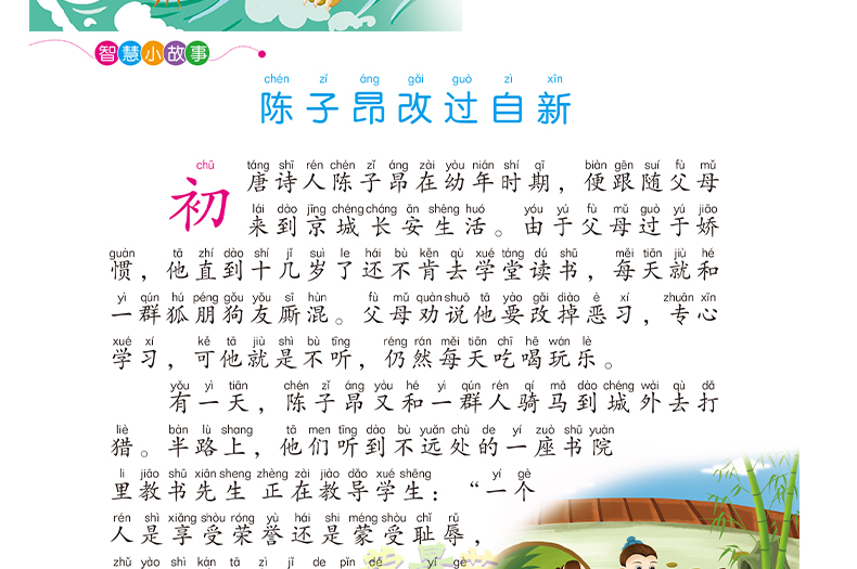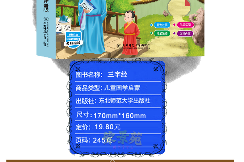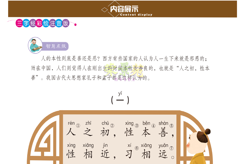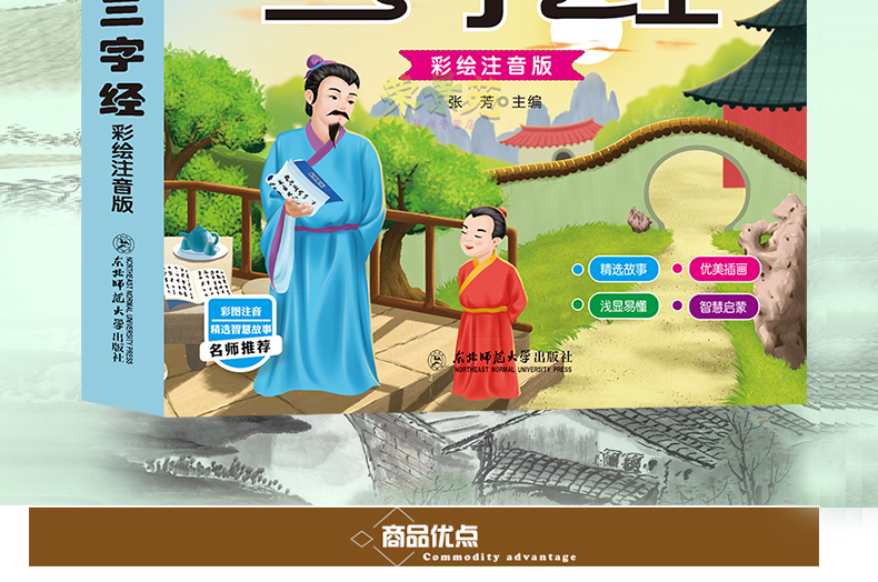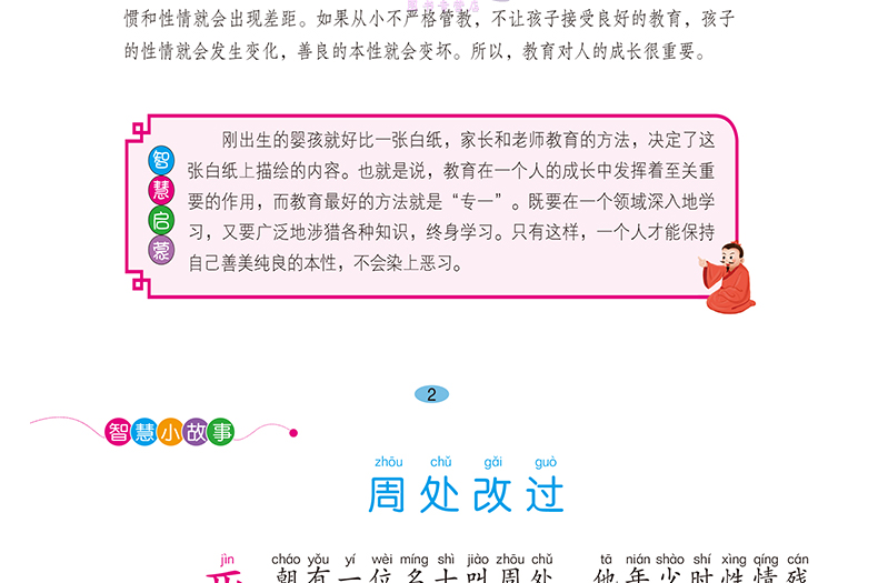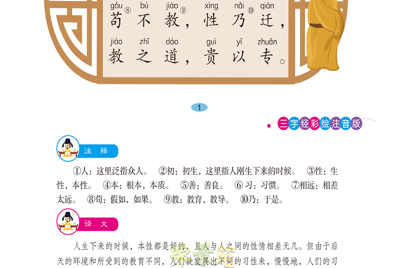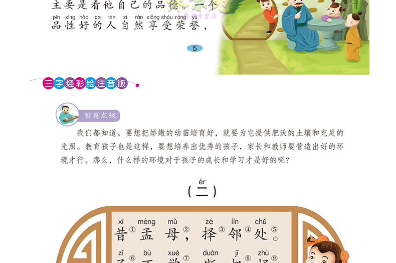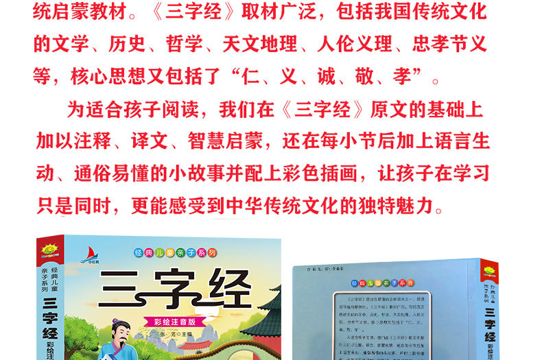 为了适合孩子阅读,我们在原文的基础上加以注释、译文、智慧启蒙,还在每小节后加上语言生动、通俗易懂的小故事并配上彩色插画,让孩子在学习的同时,更能感受到中华传统文化的独特魅力。