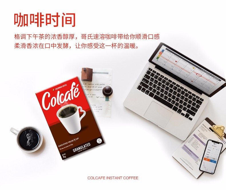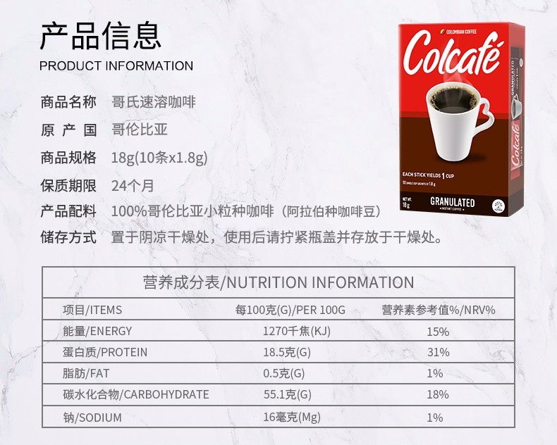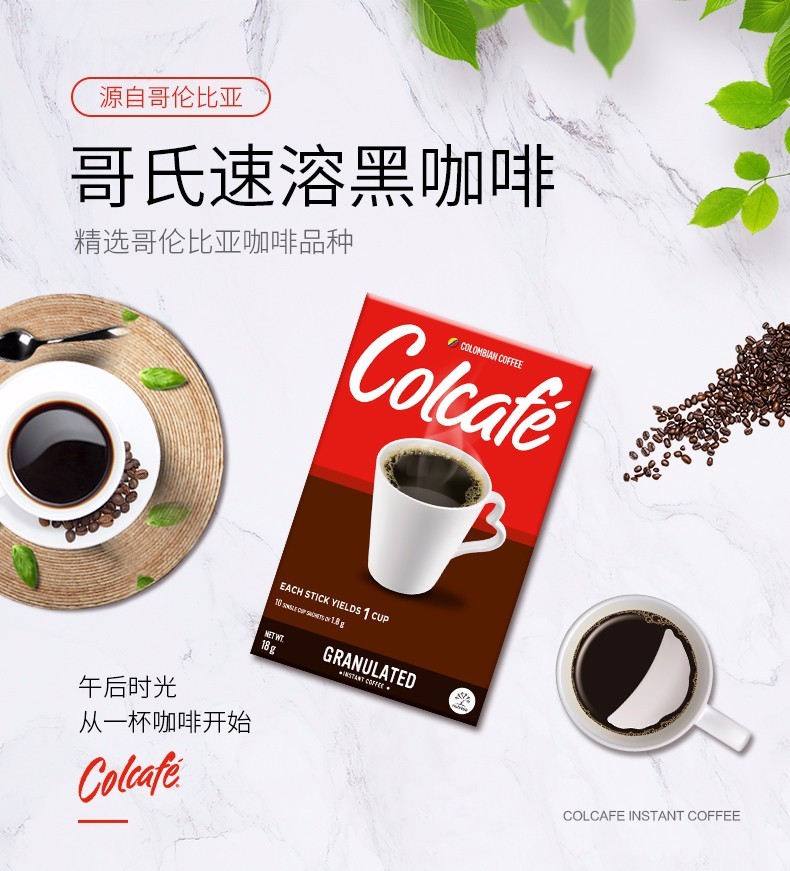 哥伦比亚进口 Colcafe哥氏速溶纯黑咖啡粉无蔗糖无奶添加10杯装