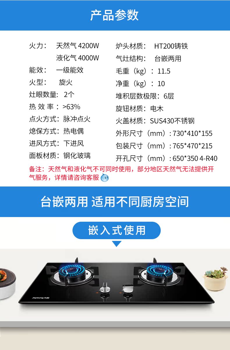 九阳燃气灶煤气灶双灶家用嵌入式节能猛火灶天然气灶液化气灶台式
