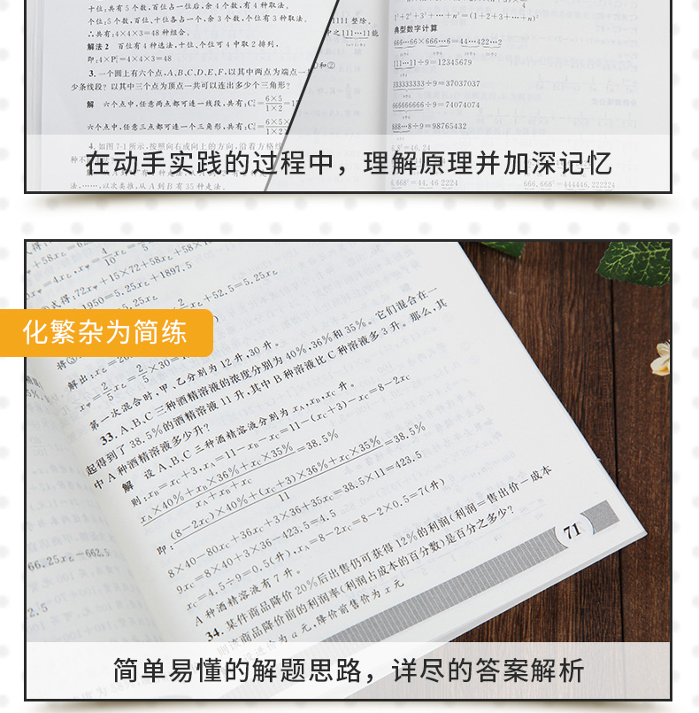 将不同类型的题目加以分类,加强学生的专项练习。大量贴近生活的例题,激发学生的学习兴趣,在自己动手实践的过程中理解原理并加深记忆,详细的解题步骤,化繁杂为简练,让学生一目了然。