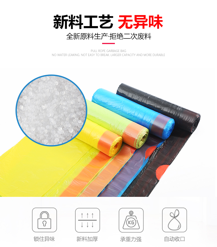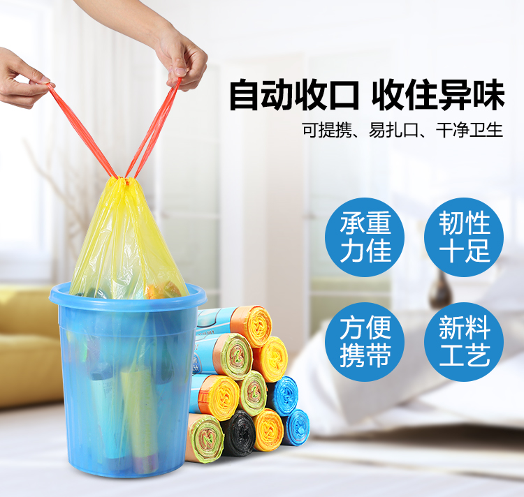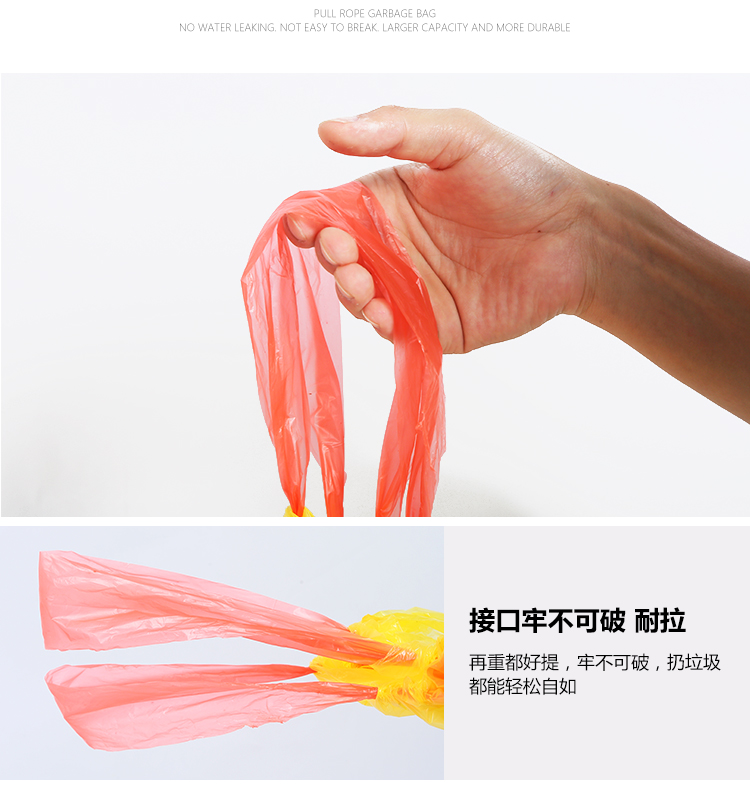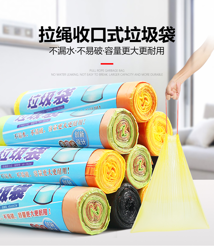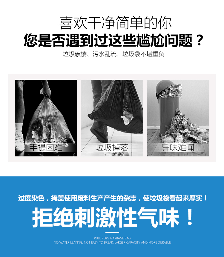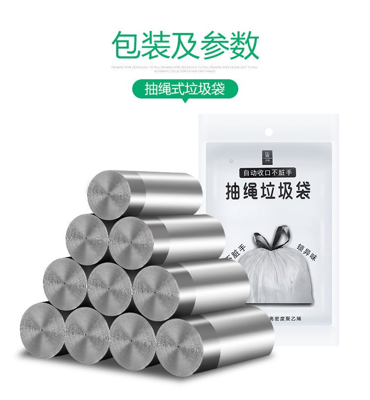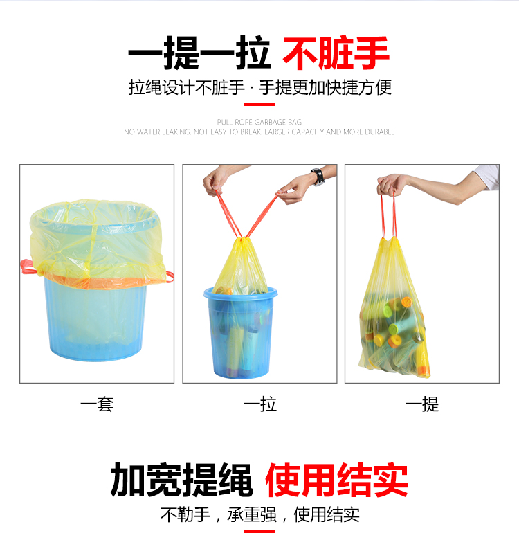 拍2件送100只平口垃圾袋!拉绳收口式垃圾袋,不漏水不易破,干净卫生,一提一拉不脏手,加宽提绳,使用结实,容量更大更耐用,装的再多也不怕,省时省力,环保安全居家必备!