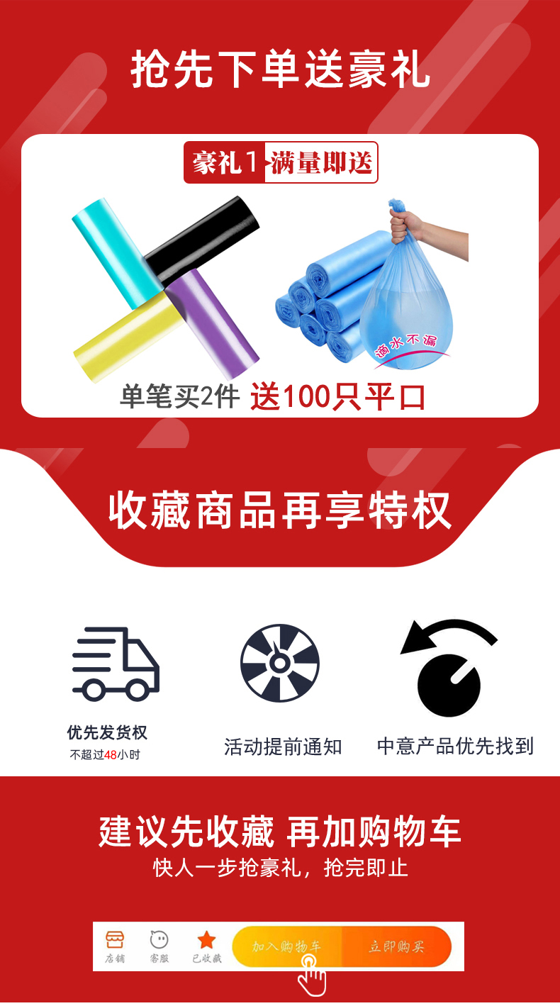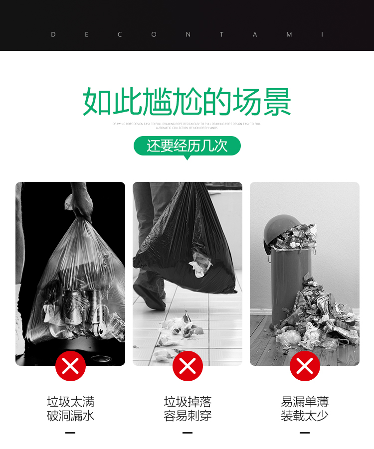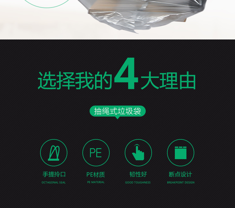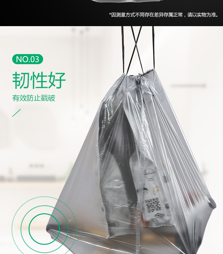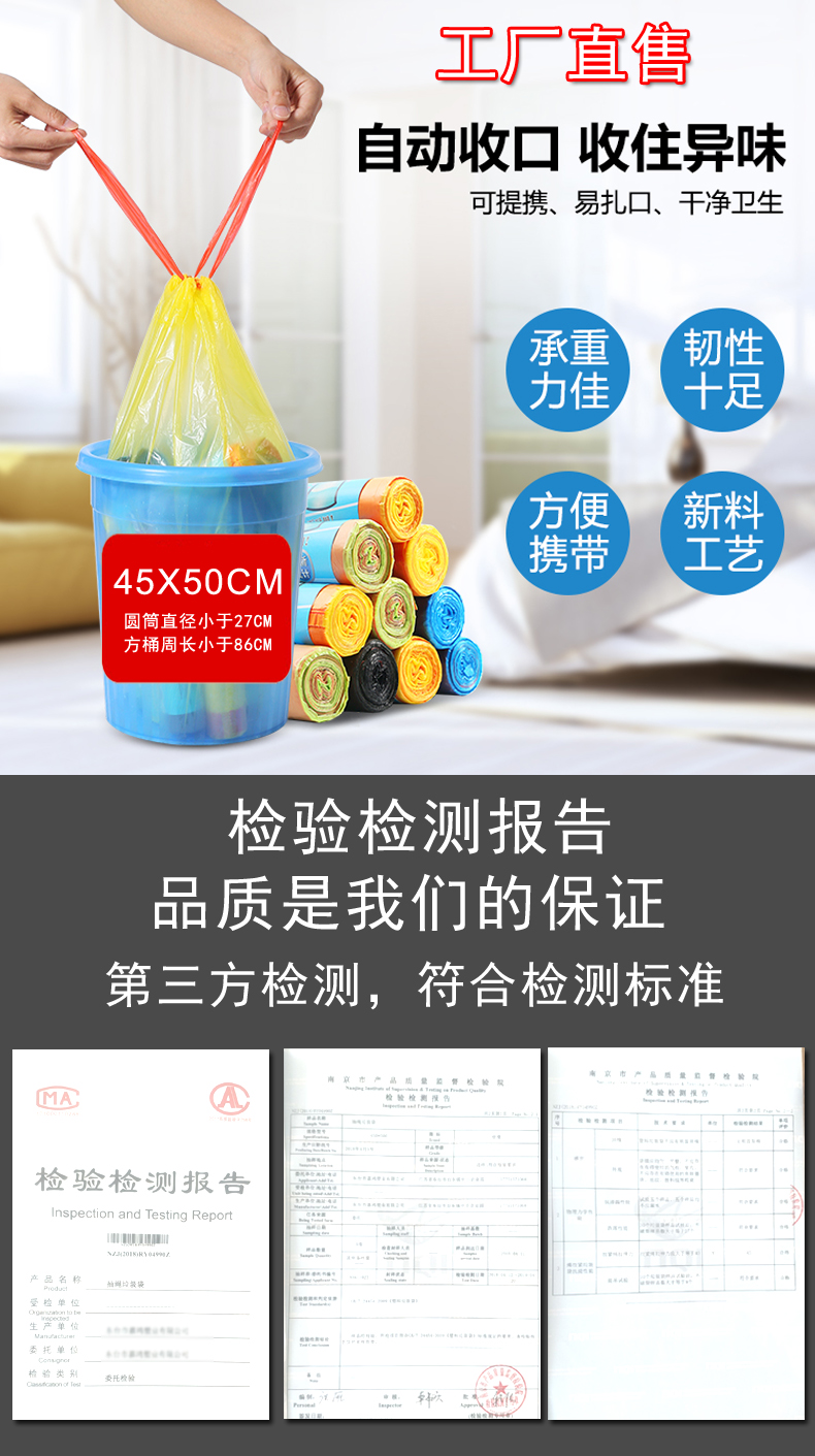 拍2件送100只平口垃圾袋!拉绳收口式垃圾袋,不漏水不易破,干净卫生,一提一拉不脏手,加宽提绳,使用结实,容量更大更耐用,装的再多也不怕,省时省力,环保安全居家必备!