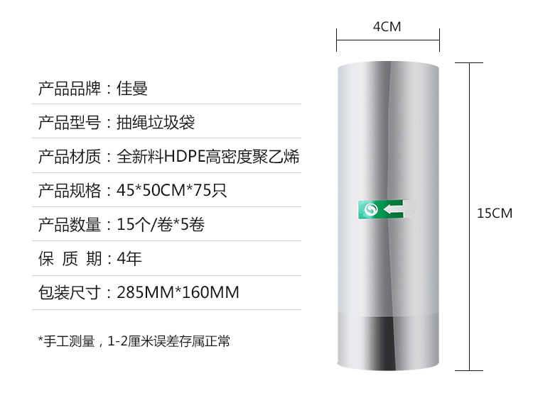 佳曼垃圾袋家用加厚手提式自动收口抽绳批发厨房拉圾塑料袋中大号