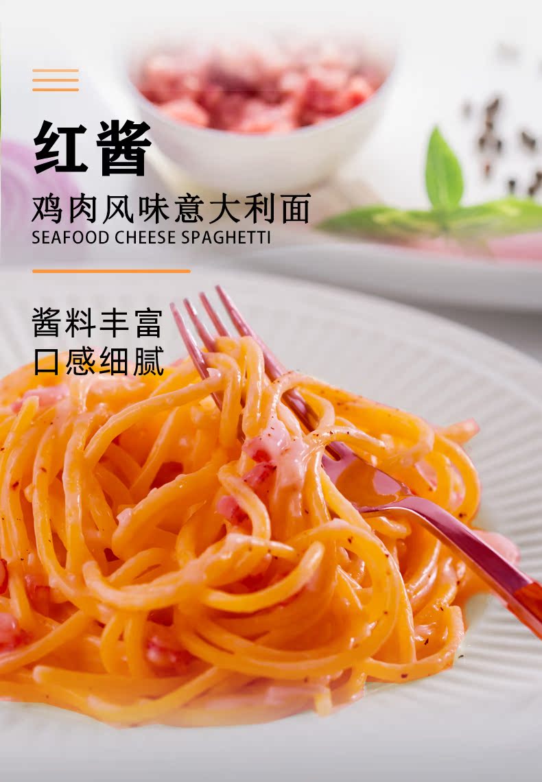 【超值装185g*4份】鲜味鸡肉加倍满足,酱料丰富口感细腻,意面之缘精心挑选食材,15种食材,3道配方,8小时熬制,高蛋白劲道Q弹,无色素无防腐,认证证书品质有保障!【赠运费险】