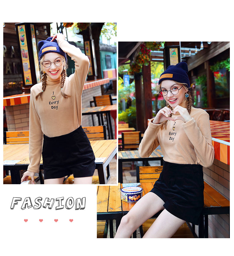 【减50】2019秋冬新款半高领修身打底衫女内搭长袖T恤宽松上衣潮