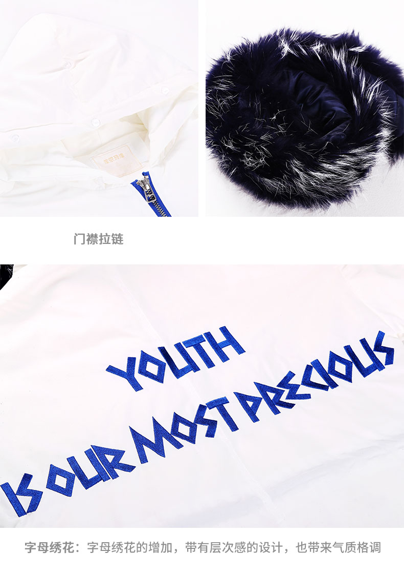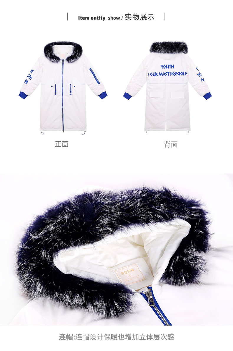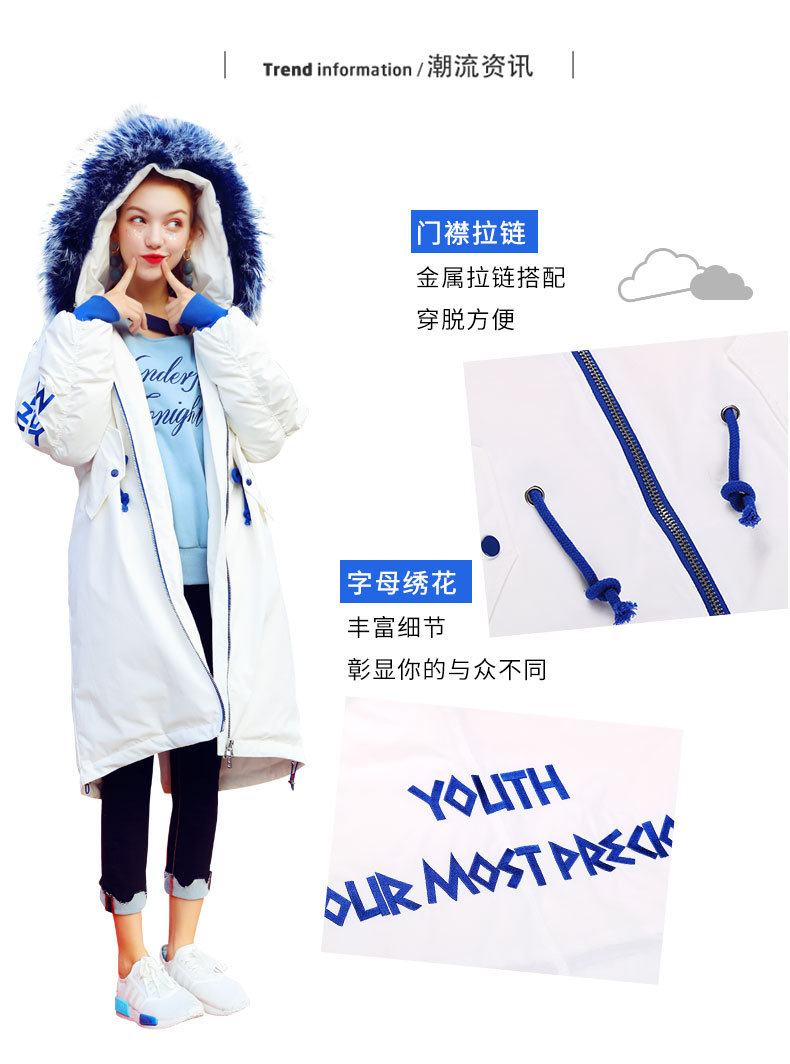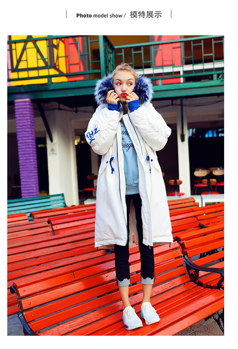 【减350】工装防冻裂羽绒服女2019冬季新款白色派克服中长款外套