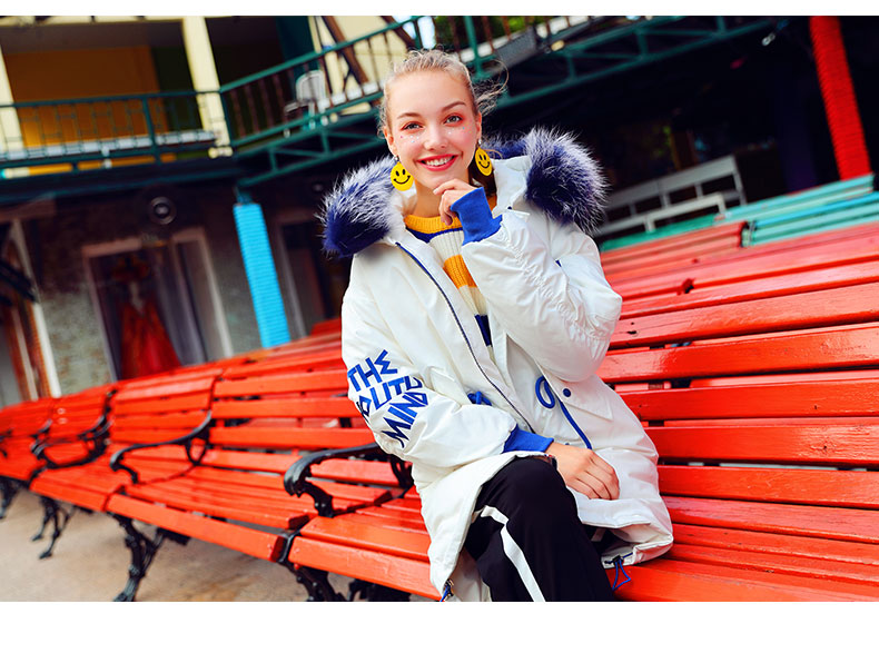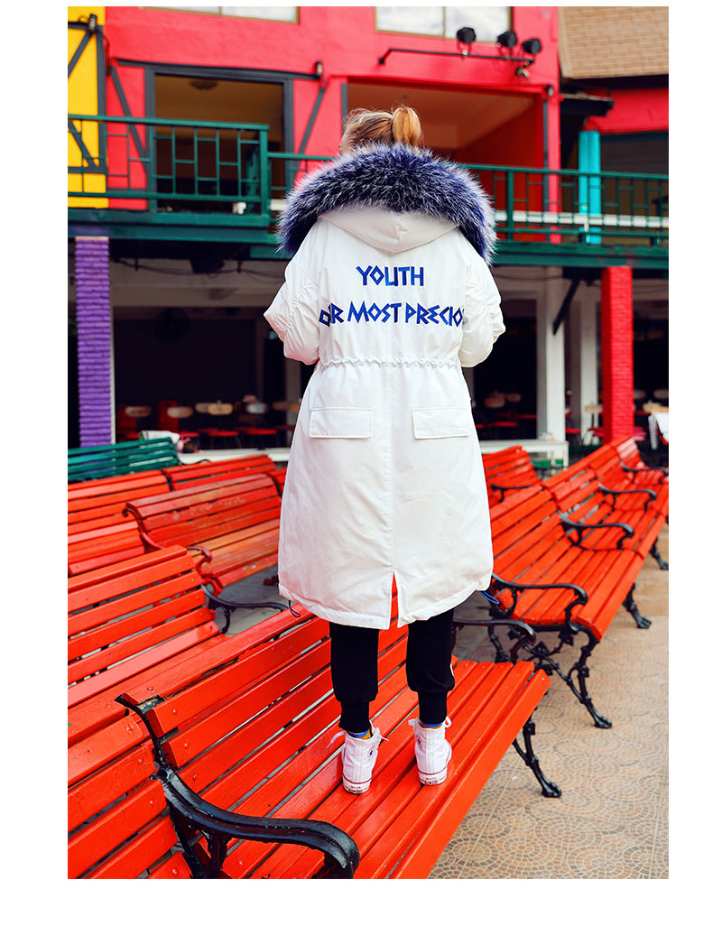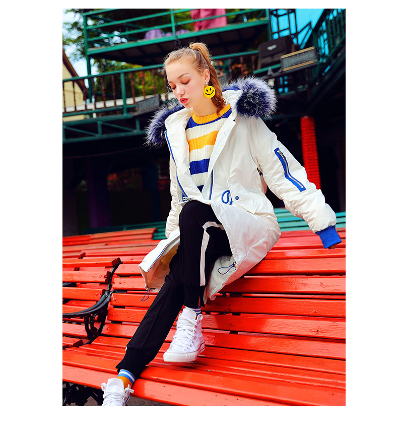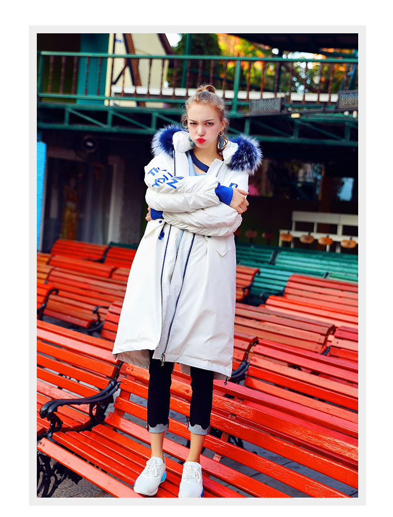 【减350】工装防冻裂羽绒服女2019冬季新款白色派克服中长款外套