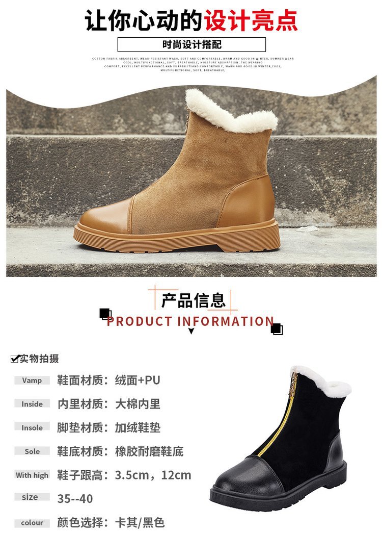 纪轩雪地靴女短筒2019新款时尚冬季厚底中筒靴子女冬加绒加厚短靴