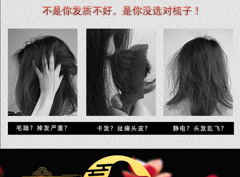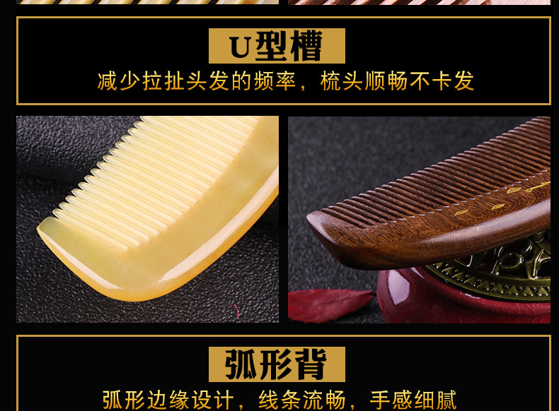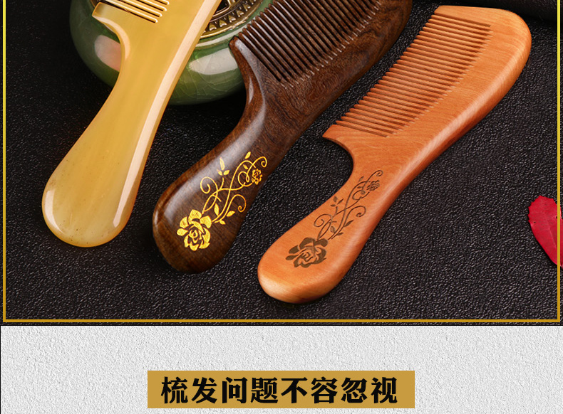 木梳牛角梳子网红款正品桃木梳檀香木梳天然脱发防男女士专用长发