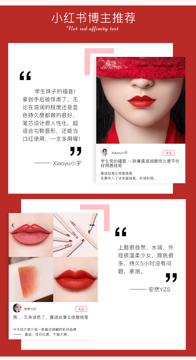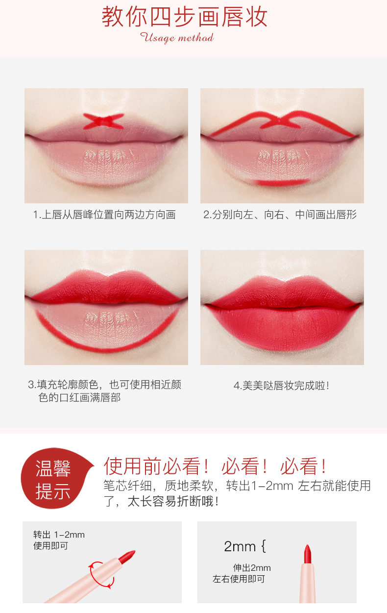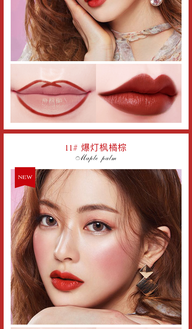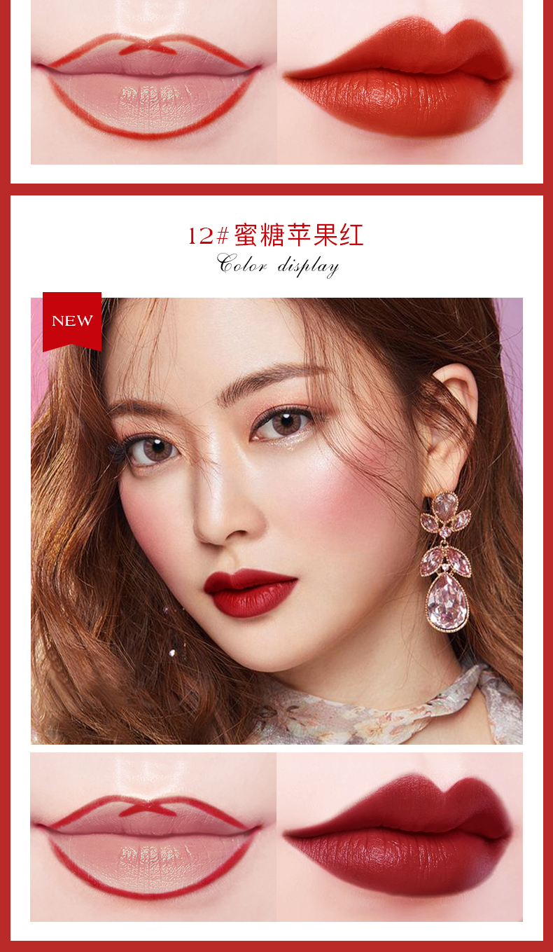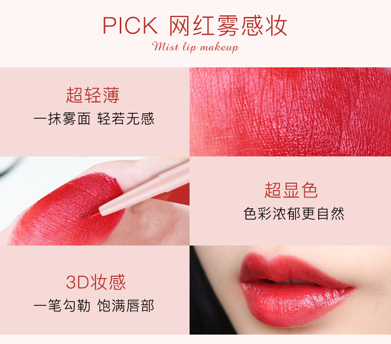 贴心唇刷设计,柔软服帖,质地雾感,持妆久保湿不褪色,全天保持精致唇妆!干爽不粘腻,明星们的真爱!“唇唇”欲动,一抹魅惑美唇