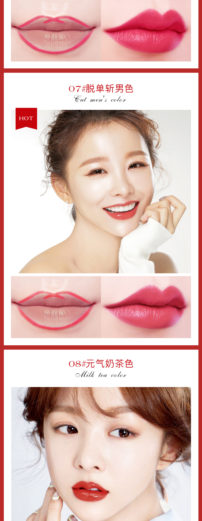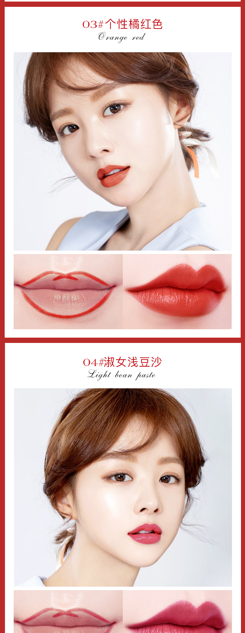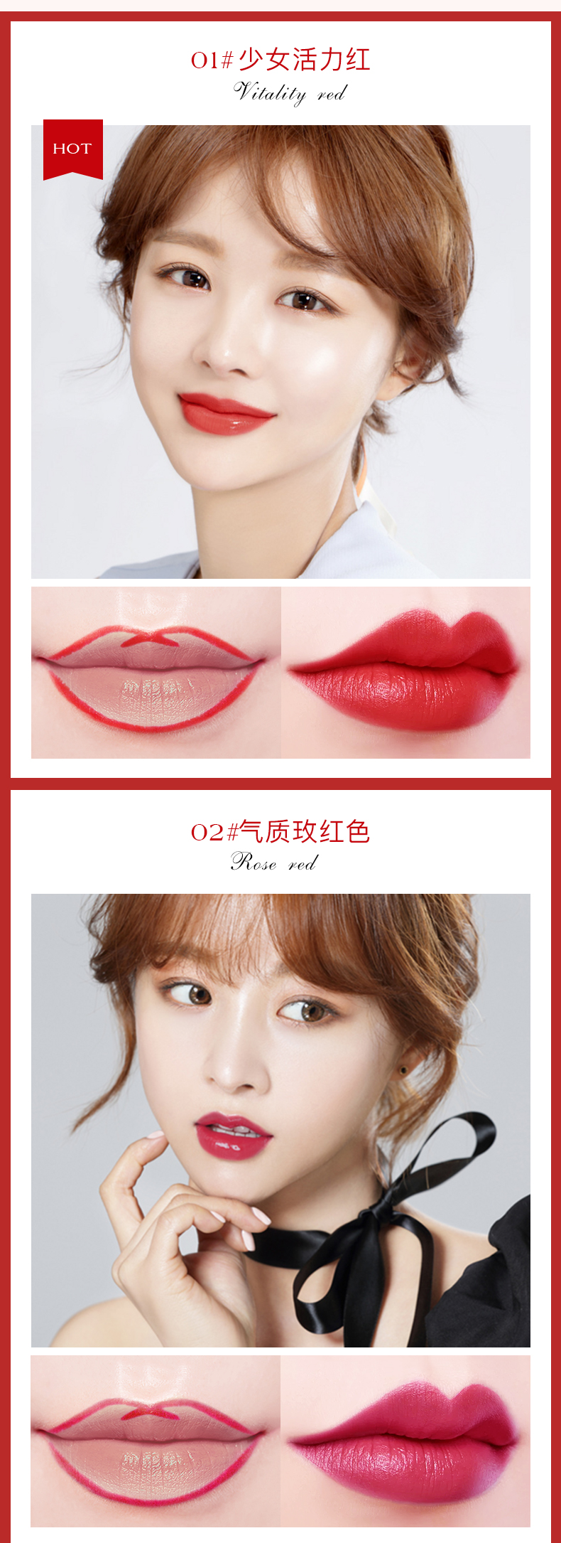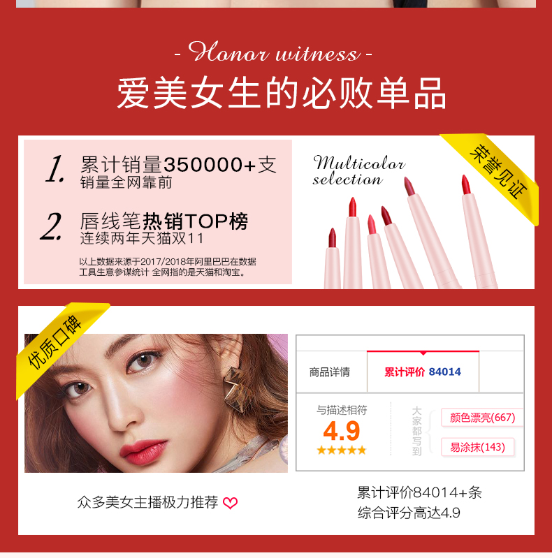 贴心唇刷设计,柔软服帖,质地雾感,持妆久保湿不褪色,全天保持精致唇妆!干爽不粘腻,明星们的真爱!“唇唇”欲动,一抹魅惑美唇