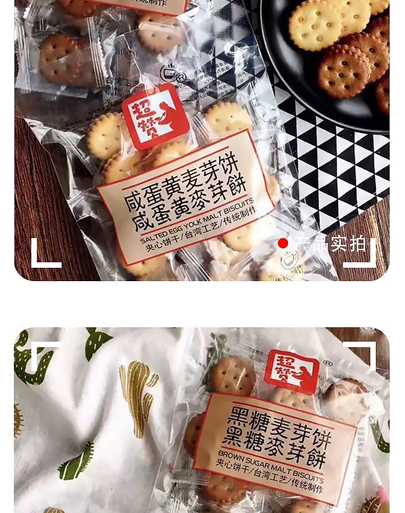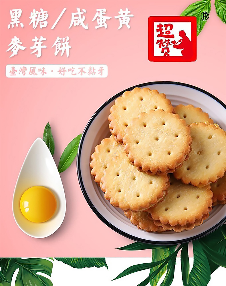 超赞咸蛋黄饼干台湾风味韩国网红休闲零食黑糖麦芽糖夹心小圆饼干