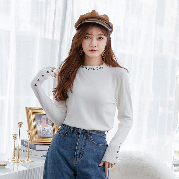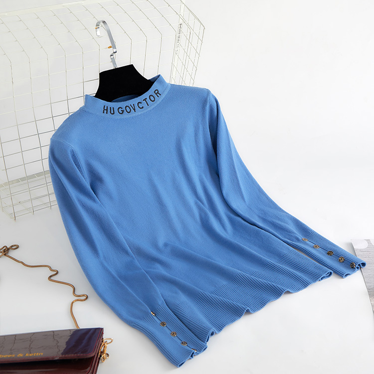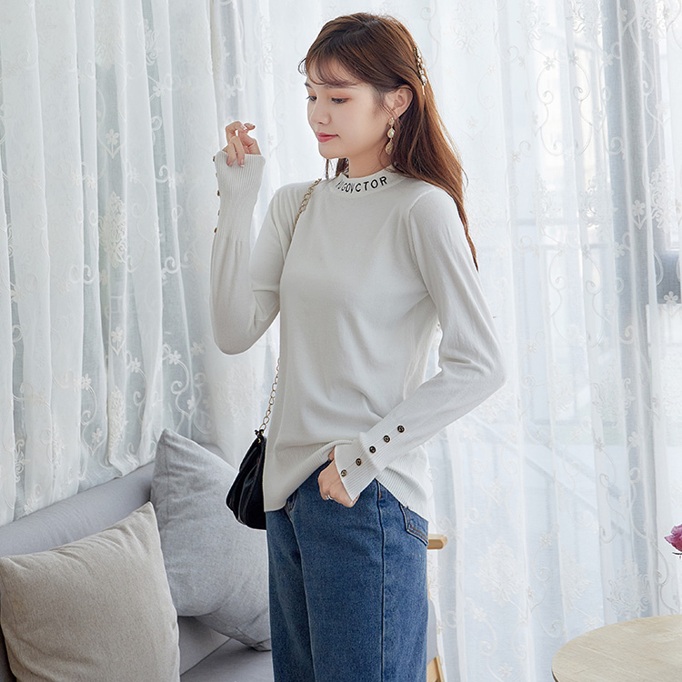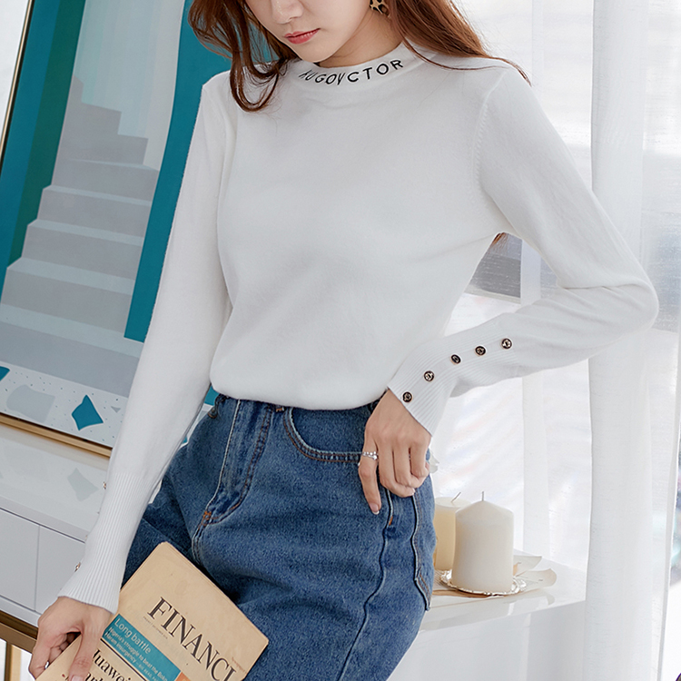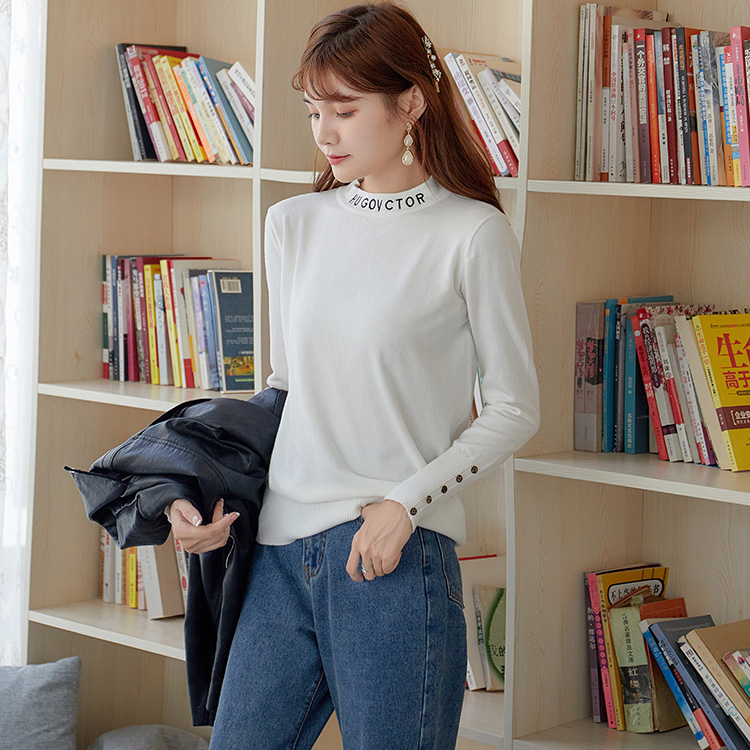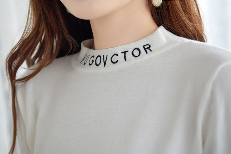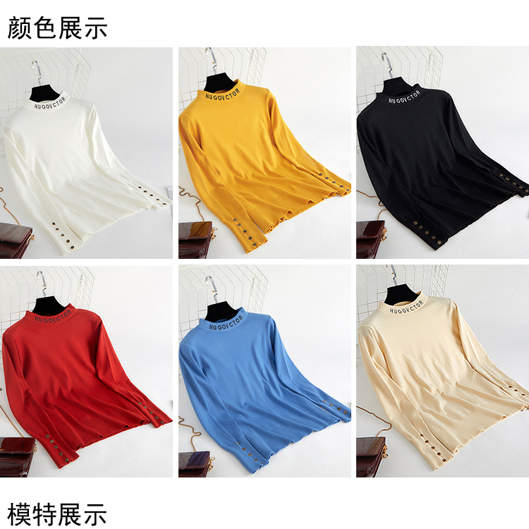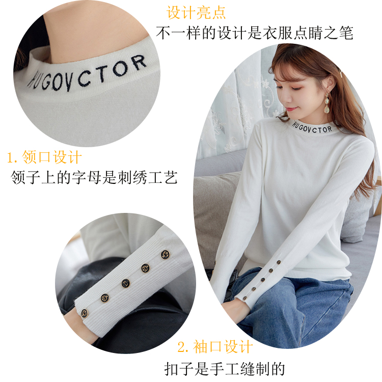 秋冬新款毛衣女半高领打底衫修身T恤内搭领子字母刺绣针织衫上衣