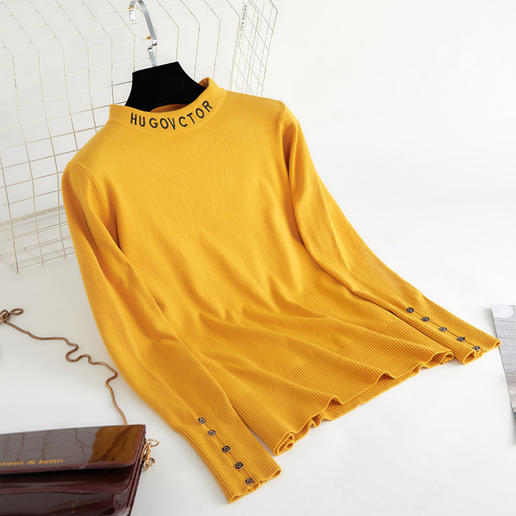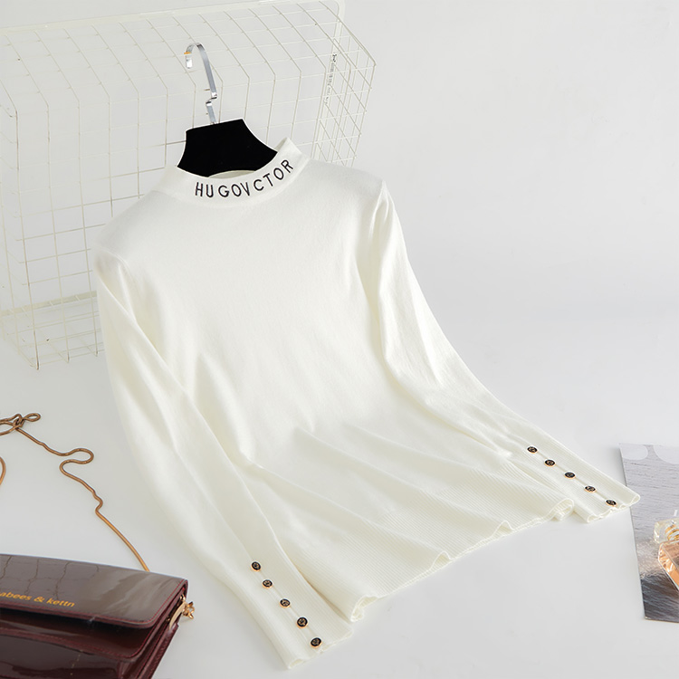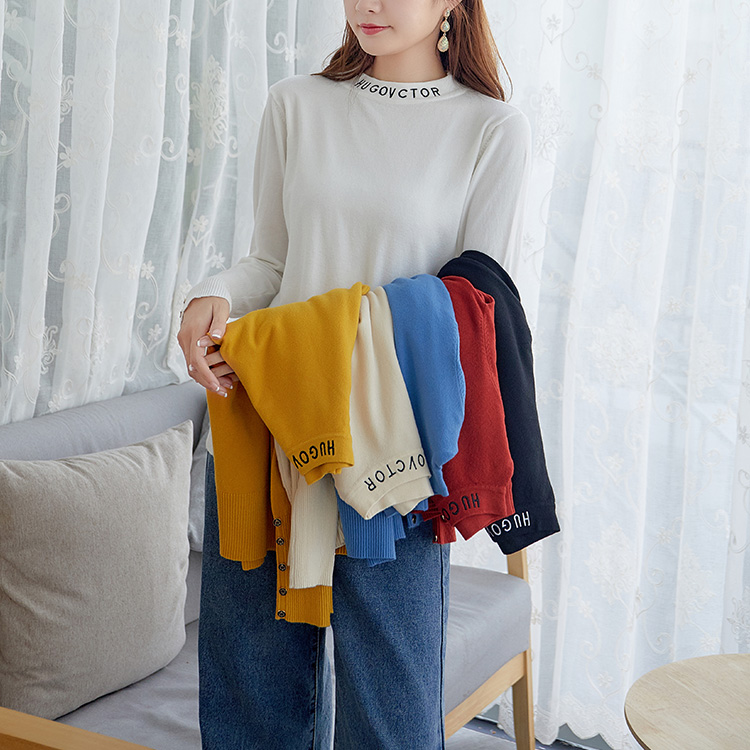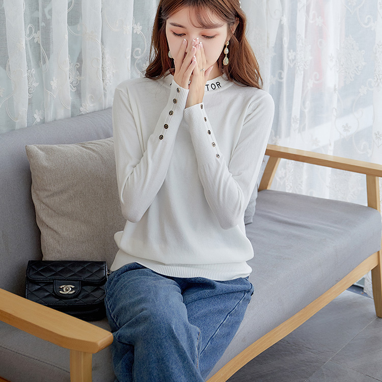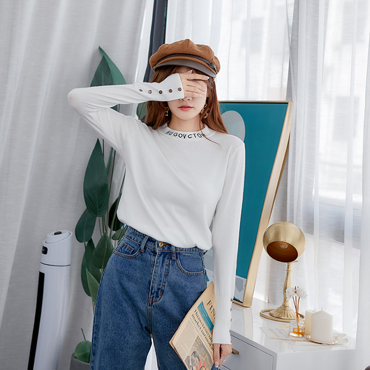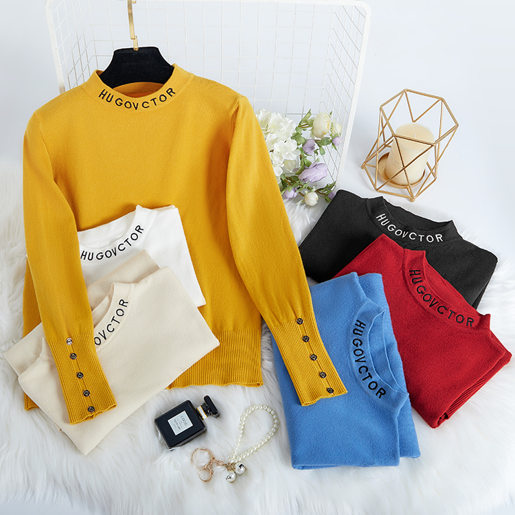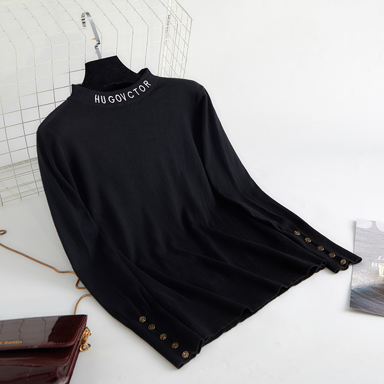 秋冬新款毛衣女半高领打底衫修身T恤内搭领子字母刺绣针织衫上衣