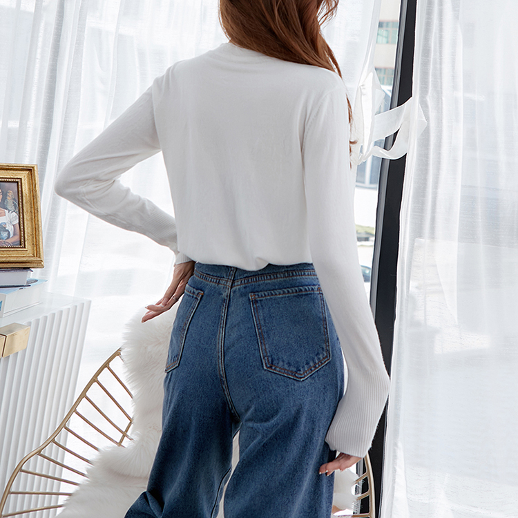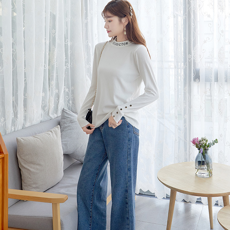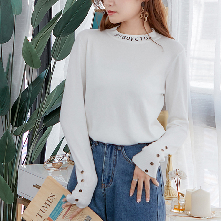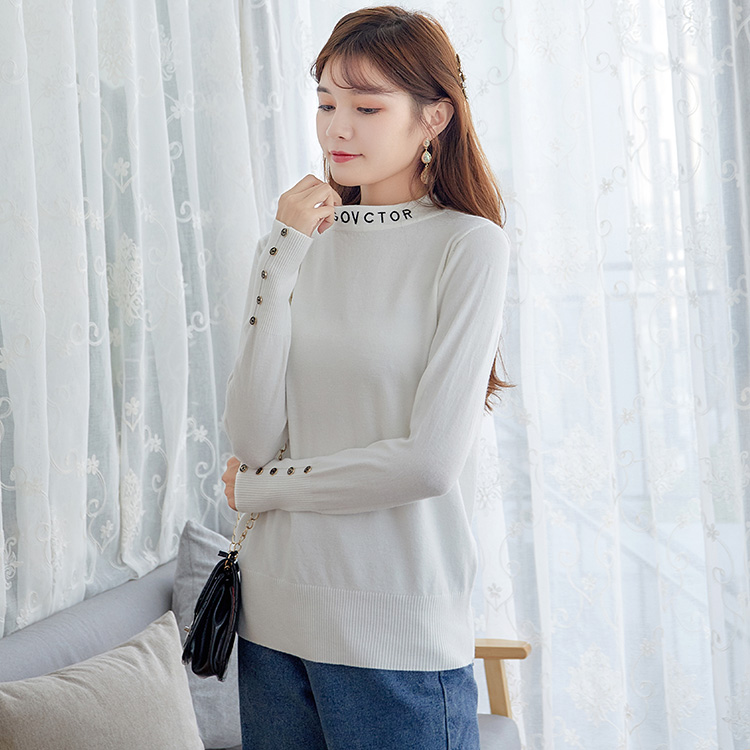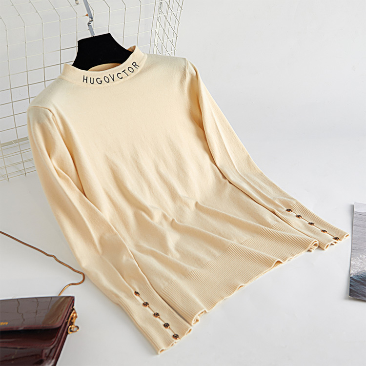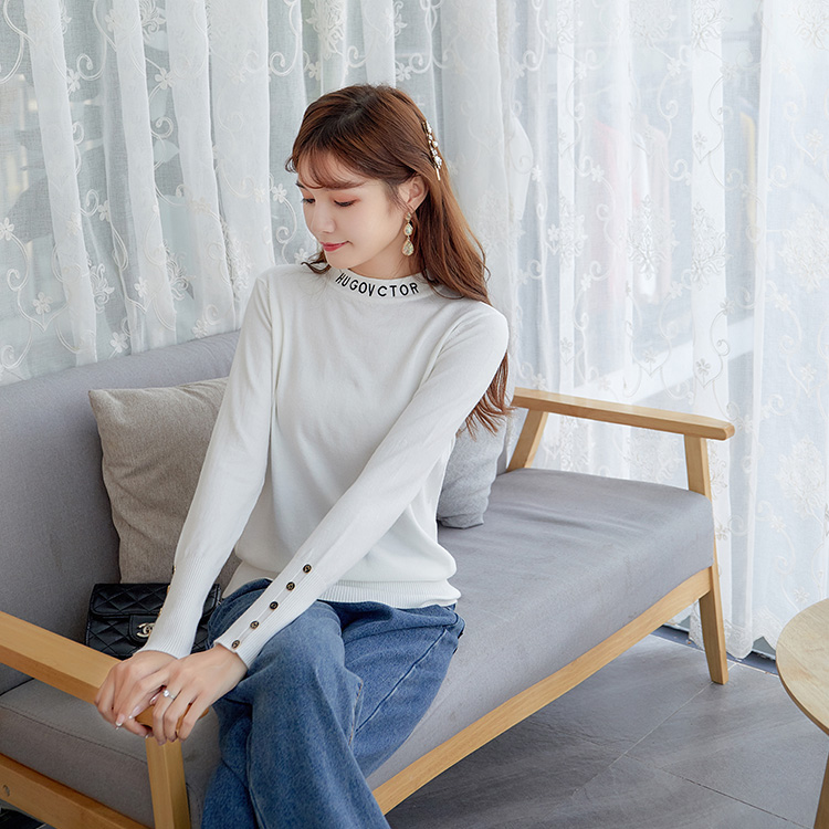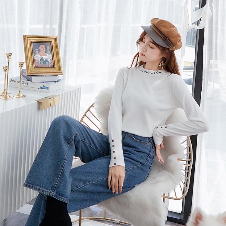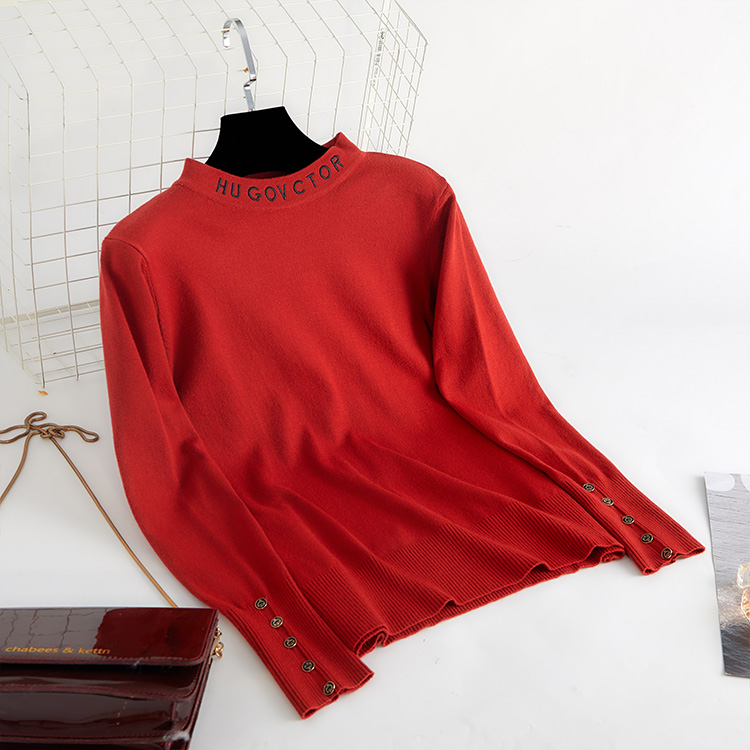秋冬新款毛衣女半高领打底衫修身T恤内搭领子字母刺绣针织衫上衣