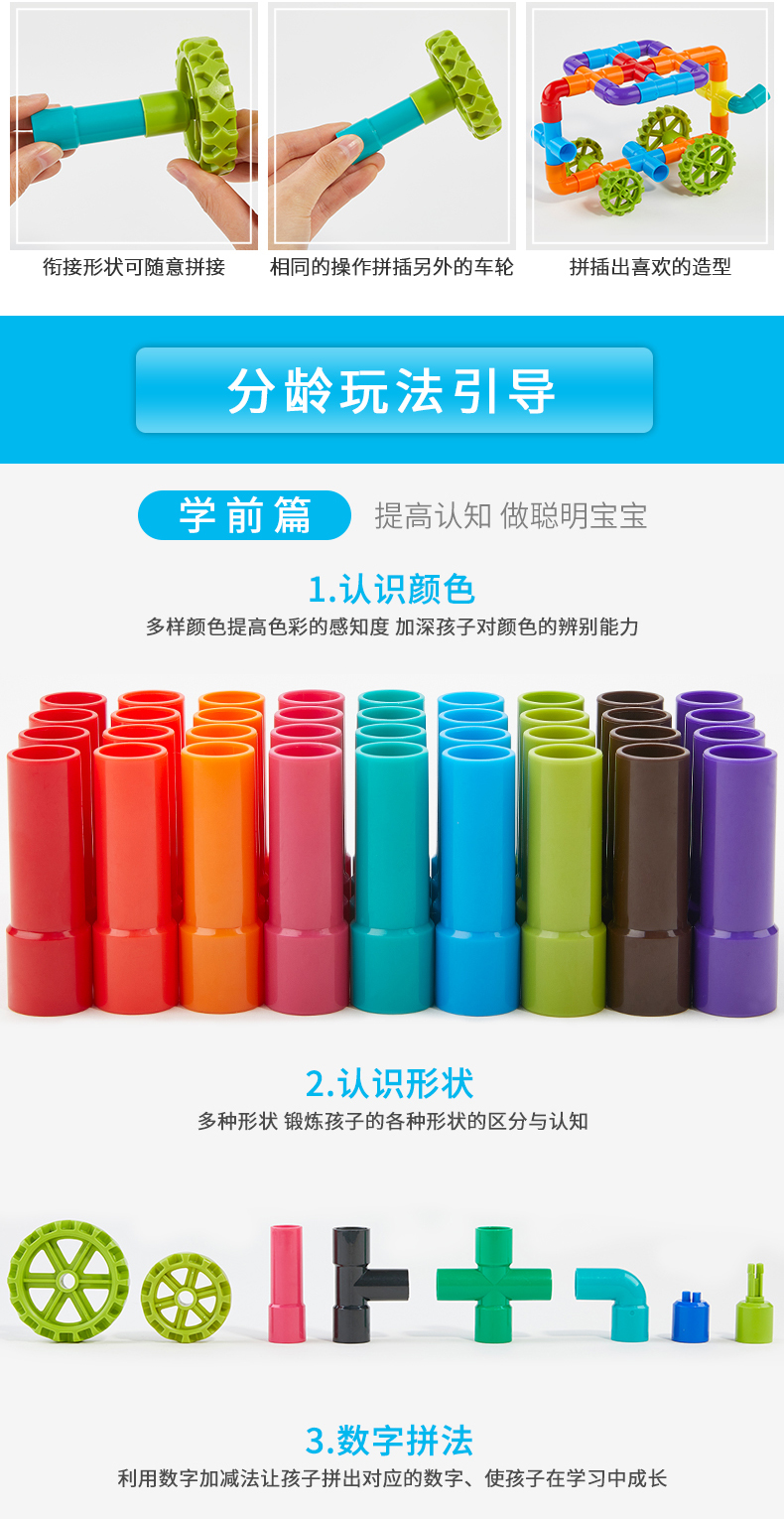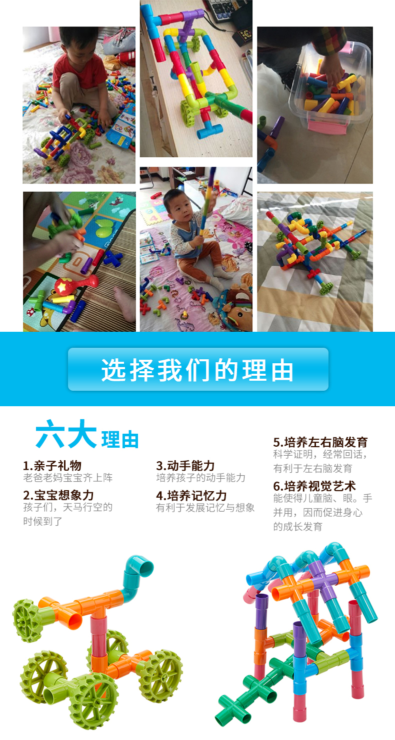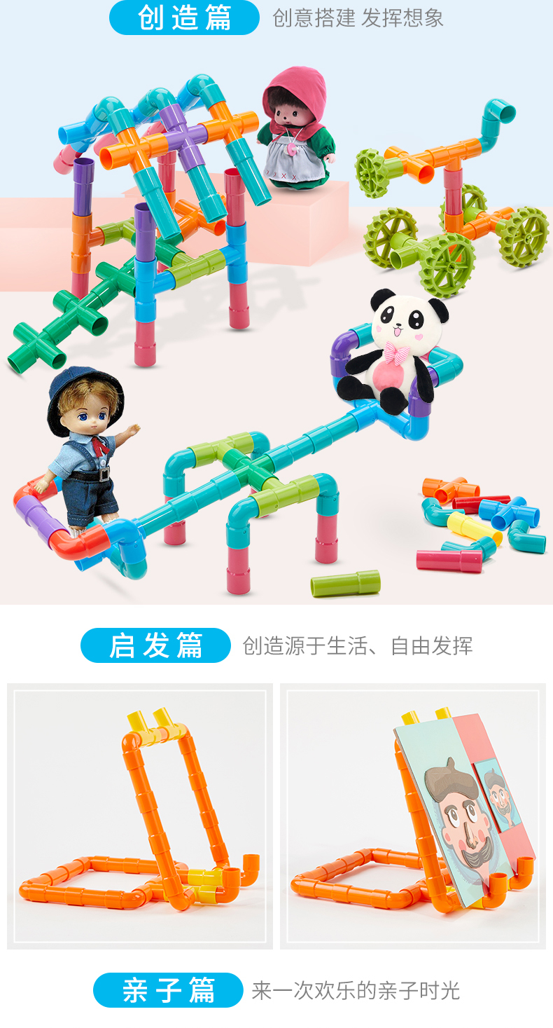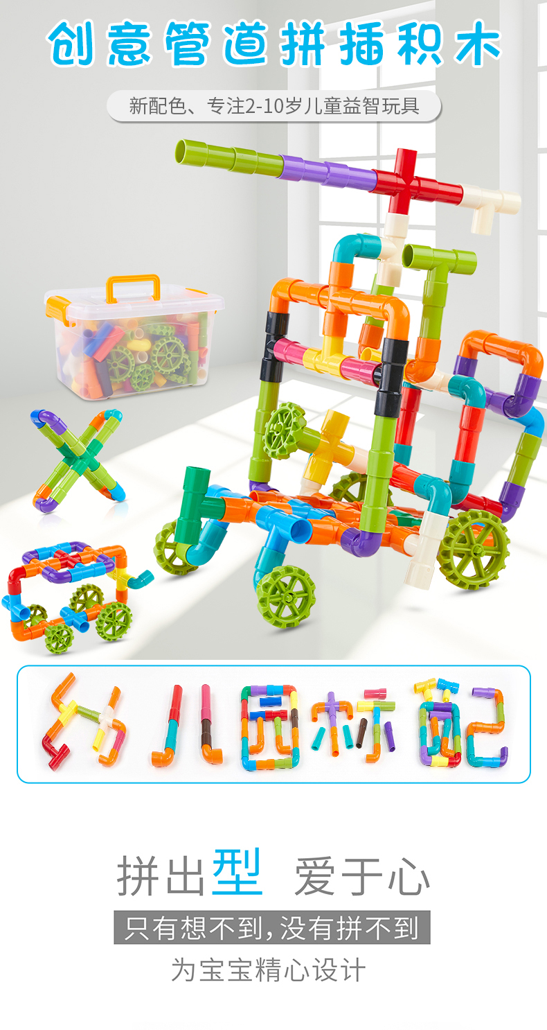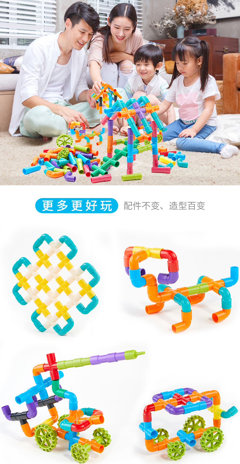 水管道积木拼装插4男孩子5益智力9宝宝1-2女孩3-6周岁7婴儿童玩具