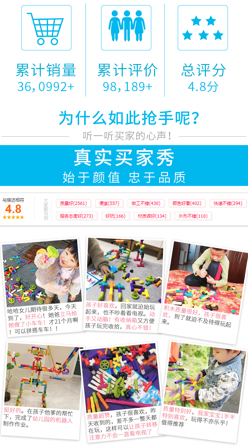 -【送收纳盒】环保材质,加厚工艺,圆滑边角,无异味,益智拼插,玩法多样,色彩美感认知,开发左右脑,培养宝宝动手能力~【赠运费险】