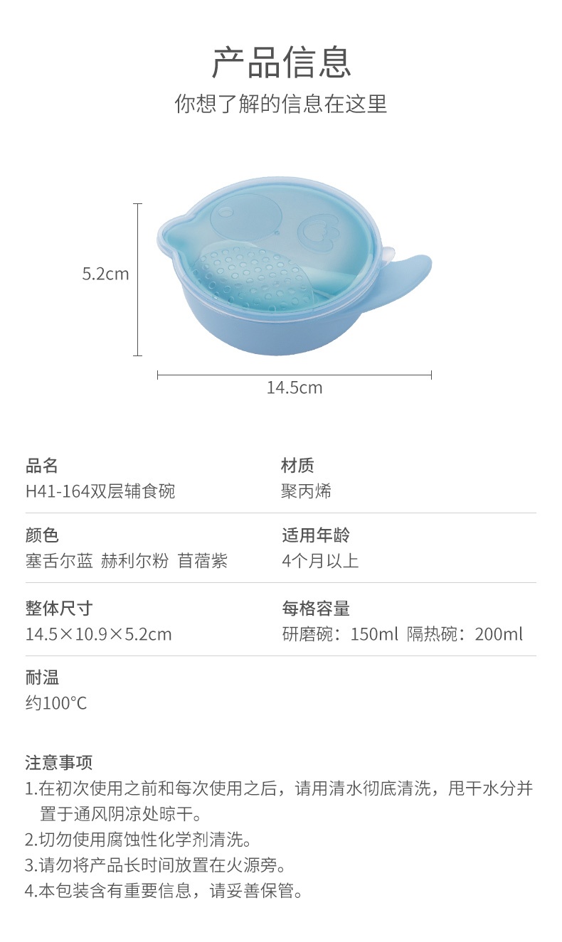 【禾果】宝宝儿童双层碗餐具套装,双层两用,碗带勺,带研磨,外出便携,隔热防烫,特价促销,先到先得