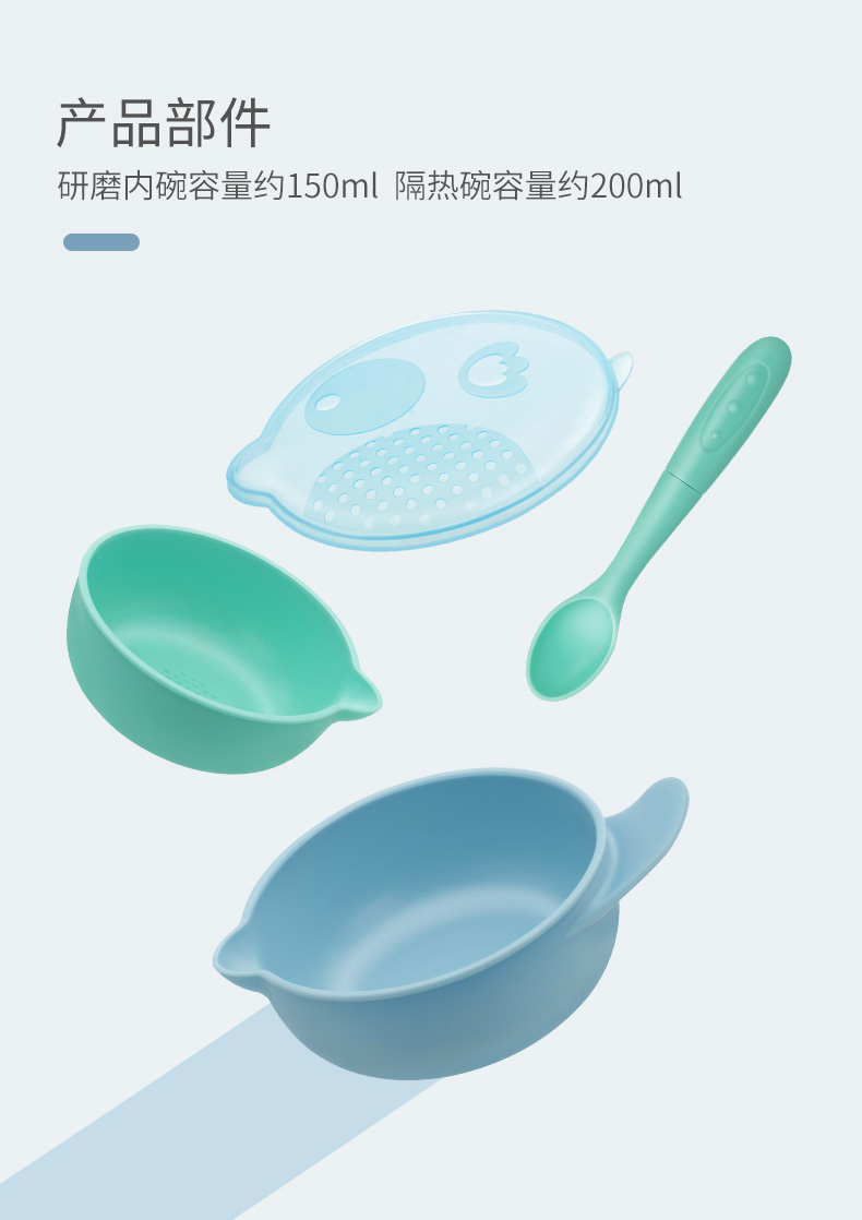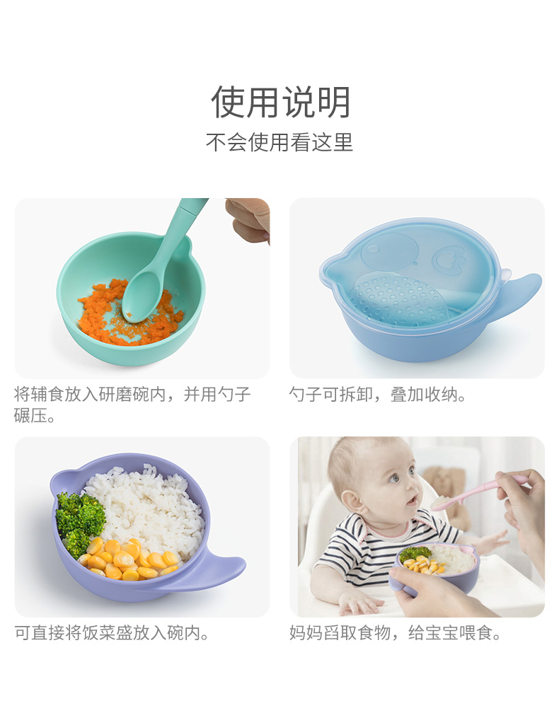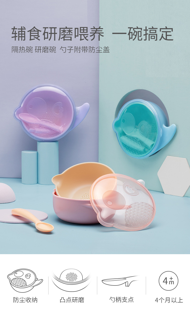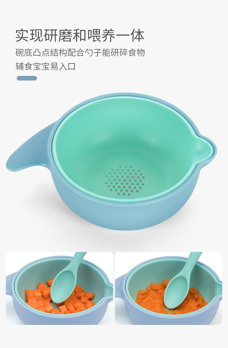 禾果新生婴幼儿宝宝儿童双层碗餐具套装卡通便携吃饭研磨辅食碗勺