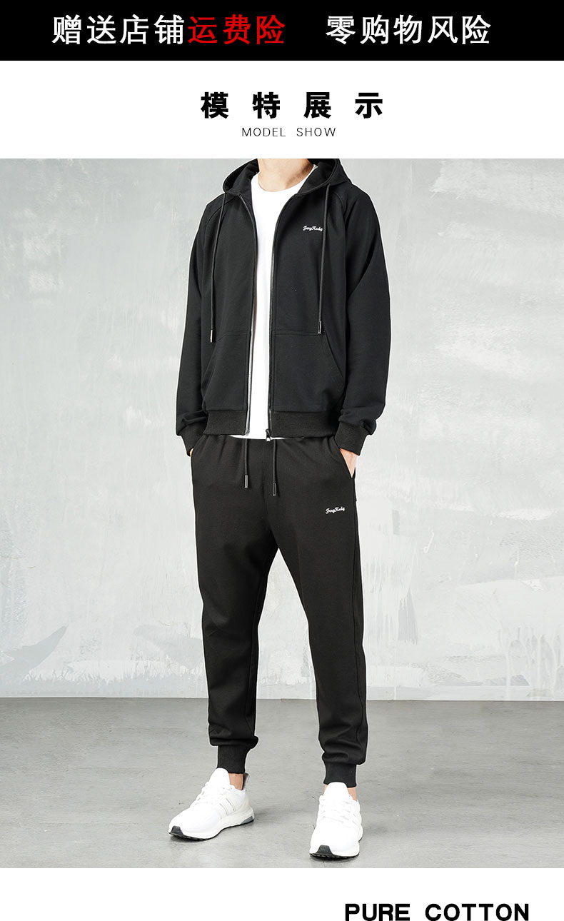 秋季卫衣套装男连帽宽松休闲男士开衫运动服春秋款韩版帅气两件套