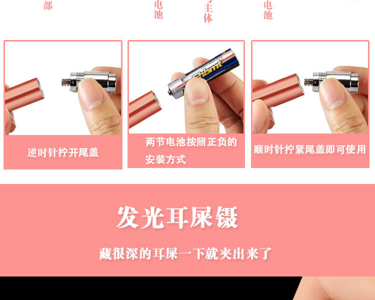 发光挖耳勺婴儿挖耳掏耳神器带灯采耳屎镊子采耳带灯夹工具套装